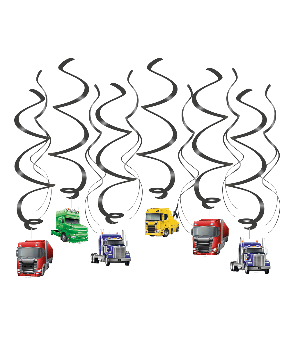 Een kinderfeestje is altijd speciaal en wat is er nou leuker dan om dit feestje leuk aan te kleden met de swirl decorations Trucks! De swirls zijn gemaakt van plastic en papier en zijn ongeveer 70 centimeter lang.
