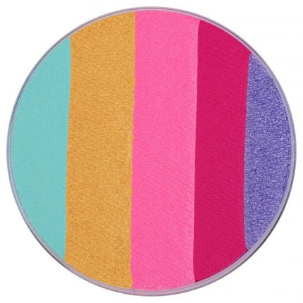 De Dream Colours Splitcake schmink van Superstar combineert verschillende kleuren waterschmink in één palet. Ook bekend als rainbowcake of colorblocks, zijn de Dream Colours Splitcakes gemaakt van de hoogwaardige Superstar Aqua Face- en Bodypaint, die voldoet aan de strenge Europese Cosmetica Wetgeving (1223/2009/EG).