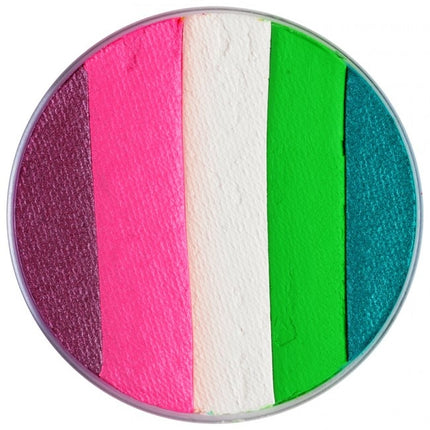 De Dream Colours Splitcake schmink van Superstar combineert verschillende kleuren waterschmink in één palet. Ook bekend als rainbowcake of colorblocks, zijn de Dream Colours Splitcakes gemaakt van de hoogwaardige Superstar Aqua Face- en Bodypaint, die voldoet aan de strenge Europese Cosmetica Wetgeving (1223/2009/EG).