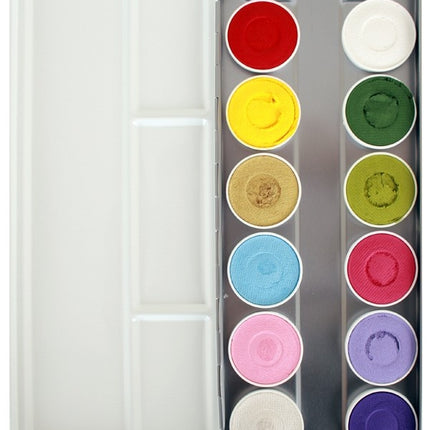 Het Superstar Schminkpalet Botanical bevat 12 kleuren hoogwaardige waterschmink en voldoet aan alle strenge eisen van de Europese Cosmetica Wetgeving (1223/2009/EG).