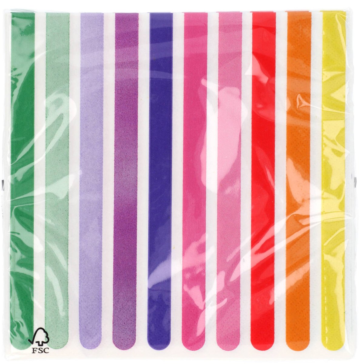 Staat altijd feestelijk. Servetten - Stripetastic - 33 x 33 cm - 20 stuks. Inhoud: 20 servetten. Bijvoorbeeld te gebruiken tijdens de volgende feestgelegenheid/feestgelegenheden: Verjaardag, Themafeest, Festival. Deze servetten met kleurige strepen staan altijd goed op tafel. Dit artikel is gemaakt van papier.