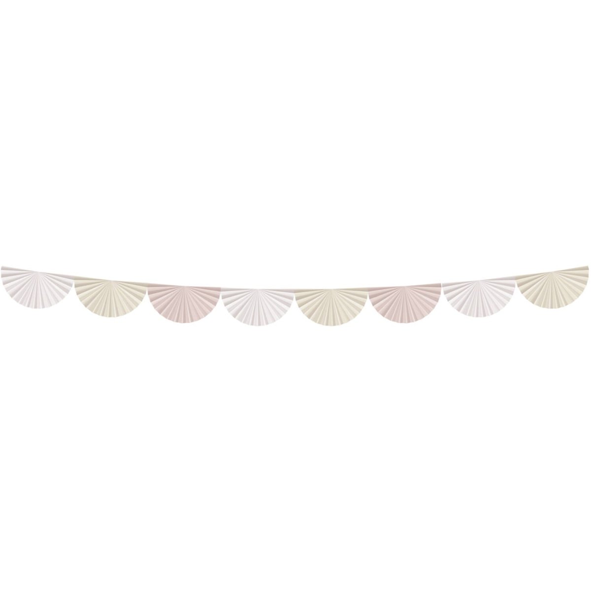 Een sfeervol feest in zachte tinten! Waaierslinger - Playful Powder - 4 meter. Inhoud: 1 waaierslinger. Bijvoorbeeld te gebruiken tijdens de volgende feestgelegenheid/feestgelegenheden: Verjaardag, Themafeest, Geboorte meisje. Fraaie decoratiewaaiers in zachtroze, zachtgeel en wit. Er zitten 16 waaiers op één slinger. De waaiers zijn 24 x 12 cm. De slinger is gemaakt van wit polyester lint. De stevige waaiers kunnen afzonderlijk over het lint worden geschoven. Dit artikel is gemaakt van FSC papier.