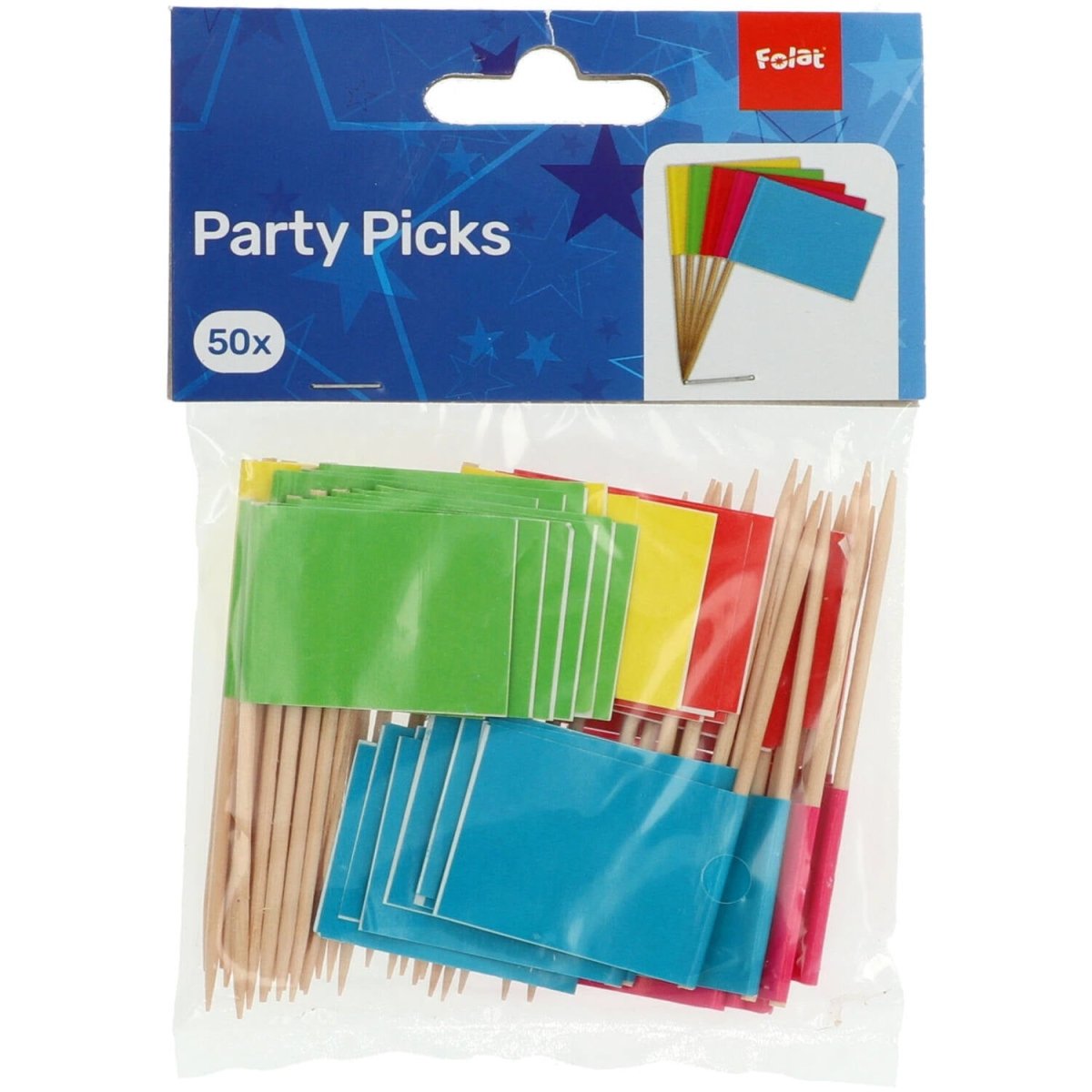 Prikkers meerkleurige vlaggetjes effen - 50 stuks. Inhoud: 50 prikkers. Kleur: Meerkleurig. Bijvoorbeeld te gebruiken tijdens de volgende feestgelegenheid/feestgelegenheden: verjaardag, kinderfeestje. Deze prikkers zijn 13,5 cm hoog. Het artikel is gemaakt van bamboe.