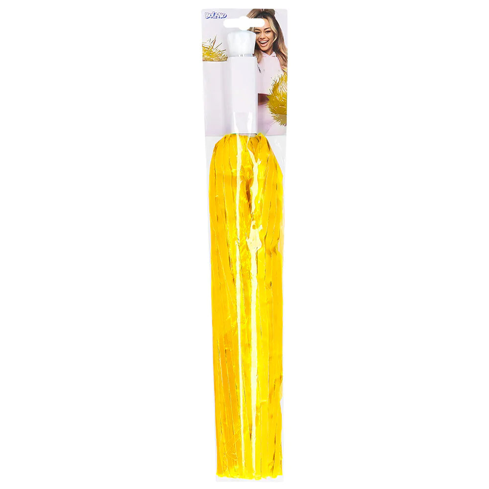 Hup team hup! Of je nu op een feestje, een evenement of thuis een wedstrijd aan het kijken bent, deze vrolijke gele pompom zorgt voor een extra dosis energie. De pom-pom heeft een felle gele kleur met een wit handvat. Super leuk als accessoire bij een sportieve outfit of cheerleader kostuum voor carnaval of een themafeest.