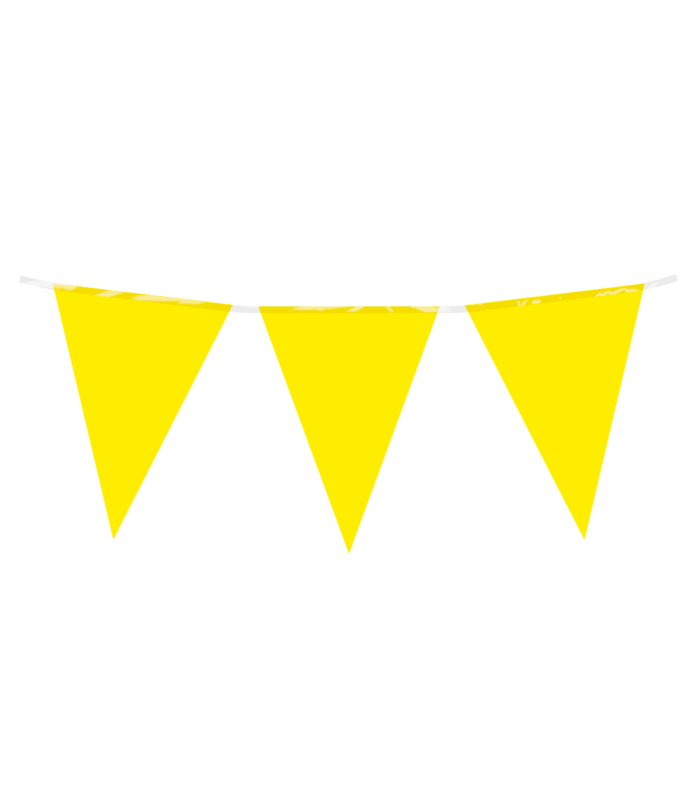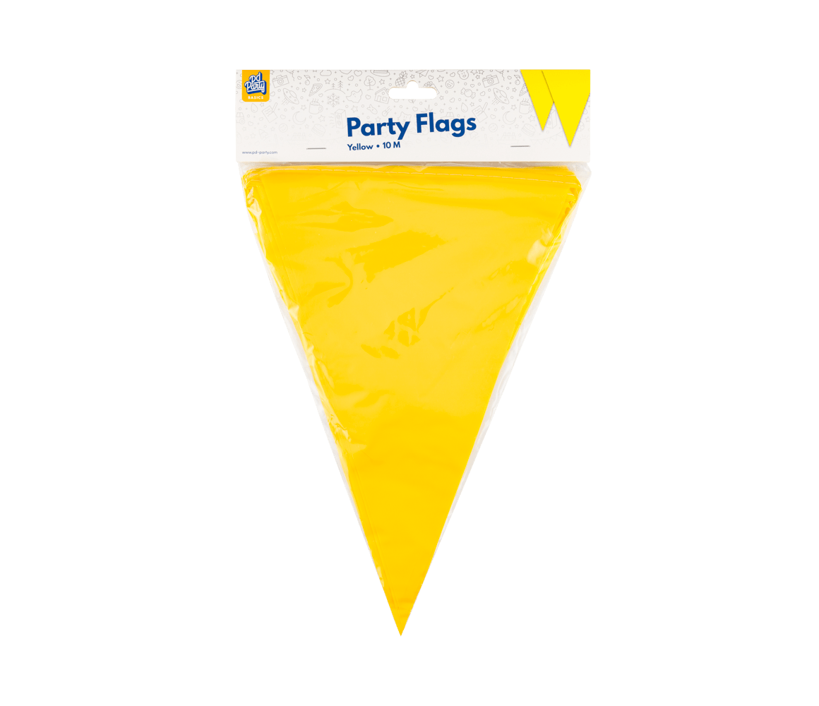 Met de party flags PE - yellow uit de Basic collectie van Paper Dreams haal je een kwalitatieve gele vlaggenlijn in huis voor een scherpe prijs. De vlaggenlijn is 10 meter lang. De vlaggetjes zijn gemaakt van Polyetheen (PE) en zijn gemakkelijk op te hangen.