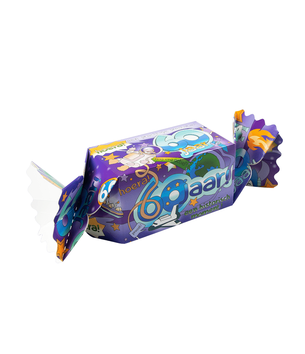 Verpakkingsinhoud: Kado / Snoepverpakking Pret - 60 jaar