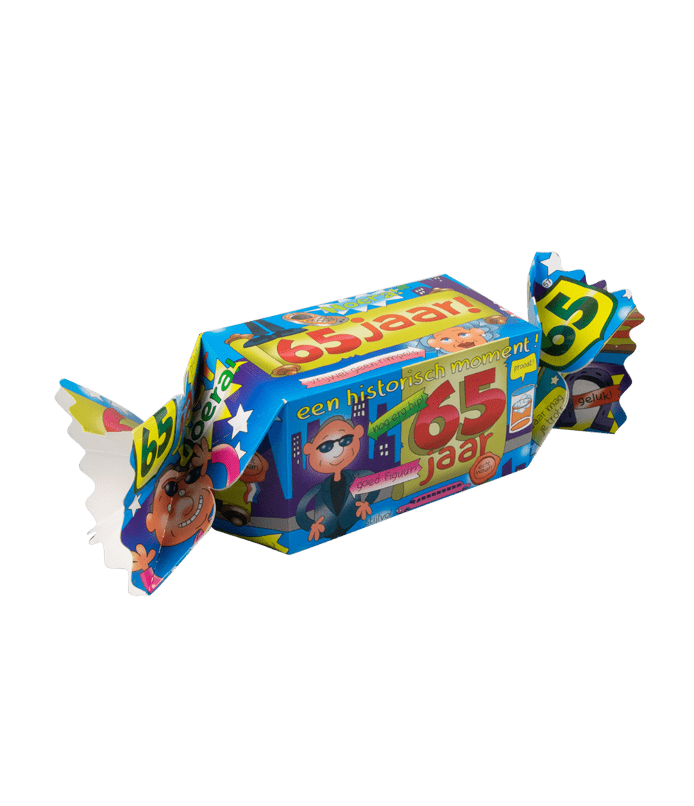 Verpakkingsinhoud: Kado / Snoepverpakking Pret - 65 jaar