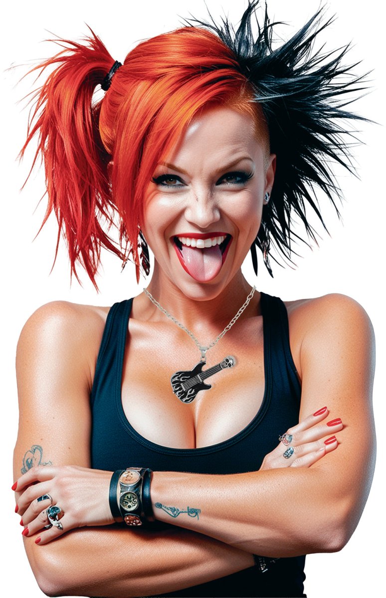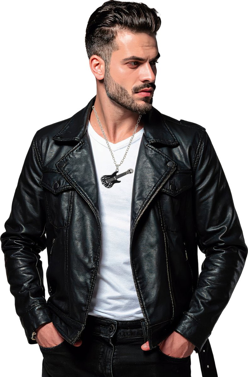 Laat je muzikale kant zien met deze stijlvolle ketting met elektrische gitaarhanger. De zwart-zilveren afwerking geeft de ketting een stoere en moderne uitstraling, perfect voor muziekfans, festivals of themafeesten. Gemaakt van duurzaam metaal en comfortabel om te dragen, zowel casual als als opvallend accessoire bij een kostuum.