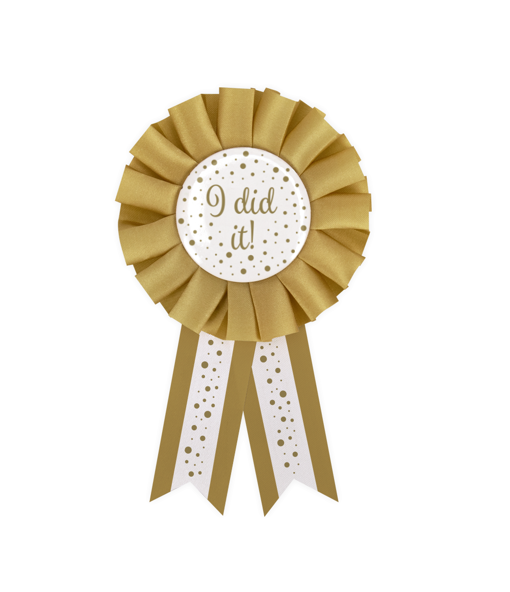 Een leuke collectie feestelijke rozetten met alle kroonleeftijden in de kleuren gold/white. Party rosettes I did it zijn erg leuk om op te spelden als er iemand geslaagd is.