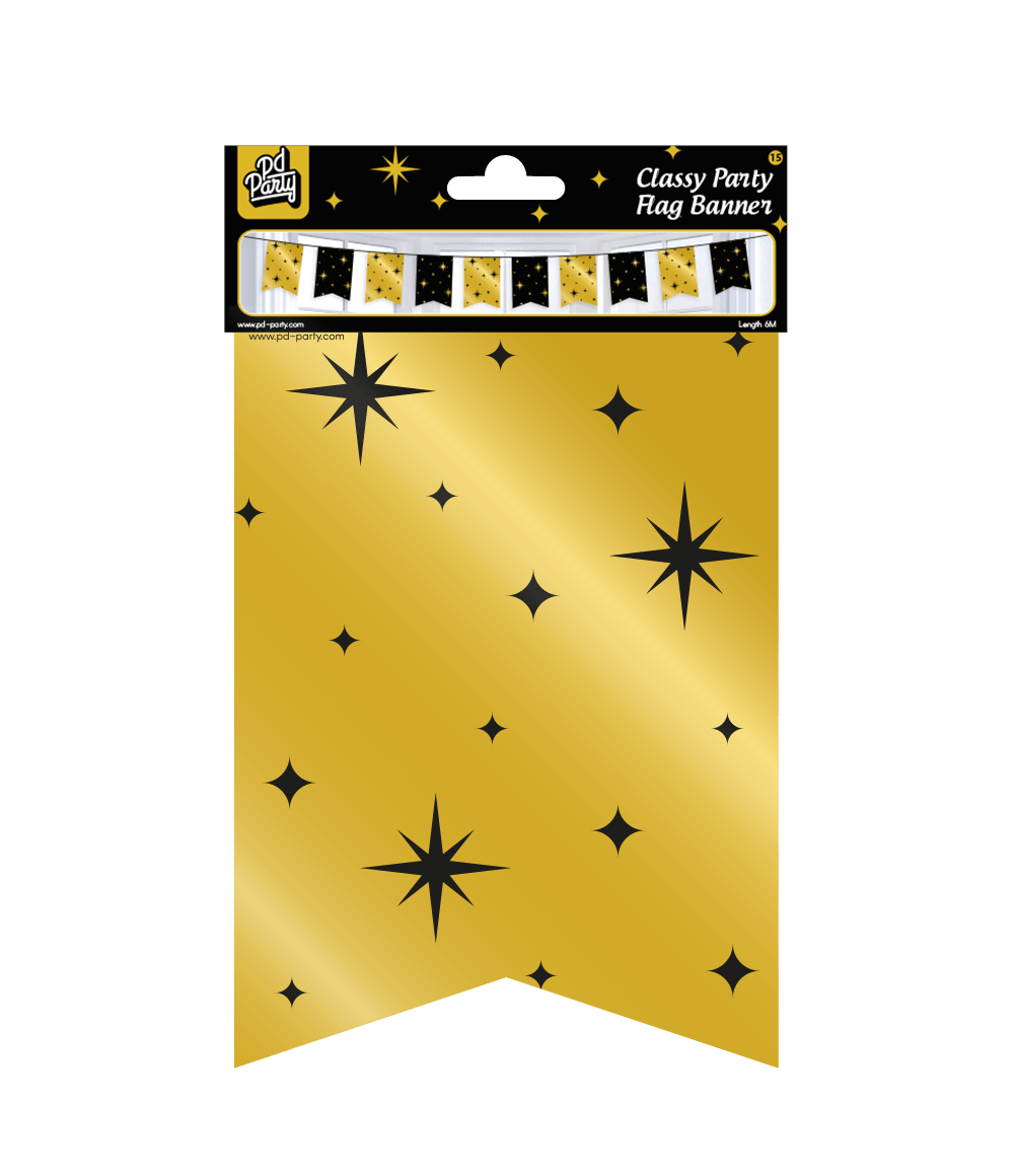 Deze goud witte vlaggetjes geven jouw feestje extra glamour, en mogen niet ontbreken op een Gold/Black party!
