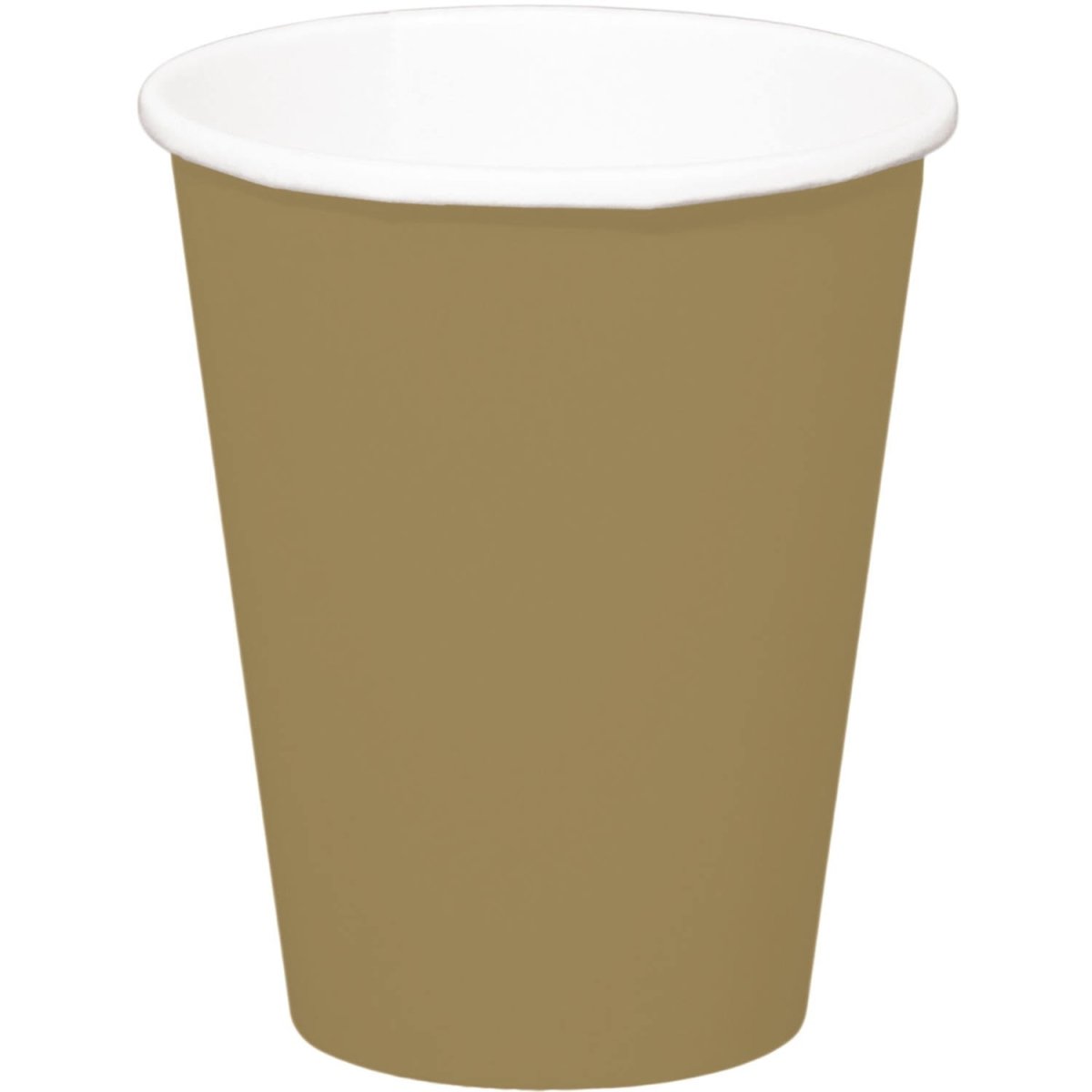 Goudkleurige Bekers 350ml - 8 stuks. Inhoud: 8 bekers. Kleur: Goudkleurig. Bijvoorbeeld te gebruiken tijdens de volgende feestgelegenheid/feestgelegenheden: Verjaardag, Kinderfeestje, Themafeest. Een beker heeft een inhoud van 350 ml. Het artikel is gemaakt van papier.
