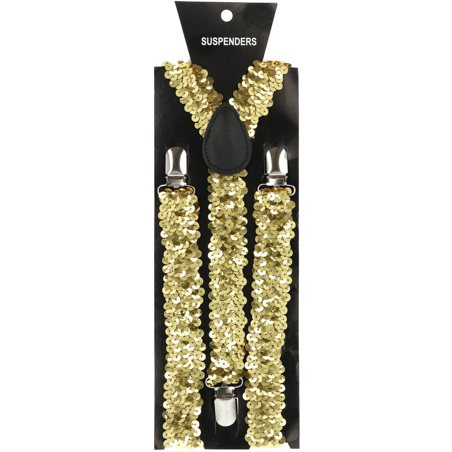 Bretels met Pailletten Goudkleurig. Inhoud: bretels. Kleur: Goudkleurig. Bijvoorbeeld te gebruiken tijdens de volgende feestgelegenheid/feestgelegenheden: Oud en Nieuw. Doelgroep: volwassenen. Het artikel is gemaakt van polyester.