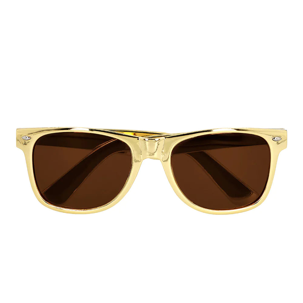 Deze gouden partybril Dance is een tijdloze accessoire voor feestjes, festivals en andere speciale gelegenheden. Met het simpele gouden montuur en de donkere glazen, voegt de bril een vleugje glamour toe aan elke look, bij zowel mannen als vrouwen.