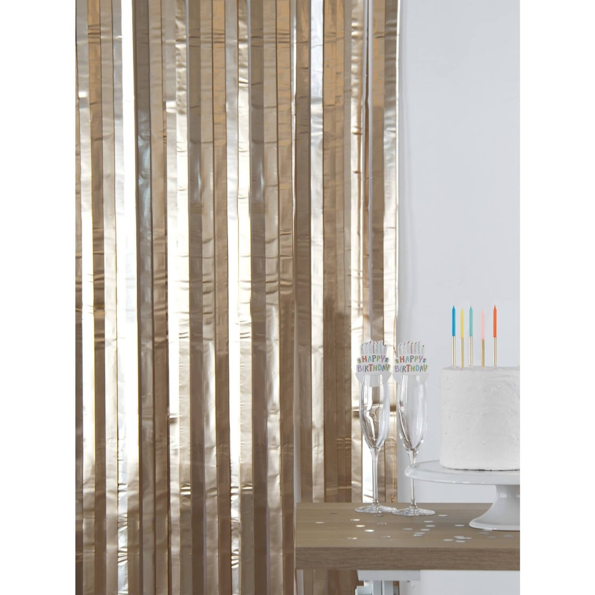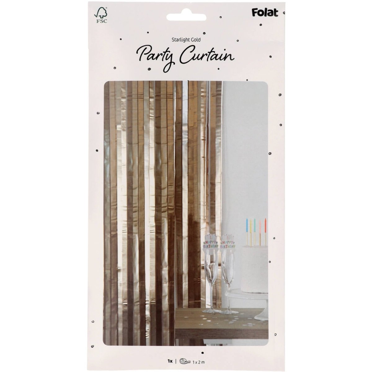 Voor een chique sfeer. Feestgordijn - Matt Goud - 1 x 2 m. Inhoud: 1 feestgordijn. Bijvoorbeeld te gebruiken tijdens de volgende feestgelegenheid/feestgelegenheden: Verjaardag, Themafeest. Een chique feestgordijn met brede gouden stroken van 2,5 cm breed. Leuk als deurgordijn, maar ook heel geschikt als backdrop voor smaakvolle foto's. Dankzij de handige plakrand is dit feestgordijn gemakkelijk op te hangen. Dit artikel is gemaakt van folie.