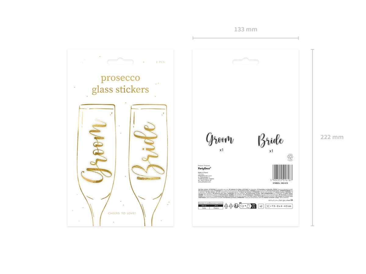 Glasstickers ''Bride & Groom'', goud, set bevat 2 stickers op een blister, afmeting ca. 7,5-8 x 4-4,5 cm.