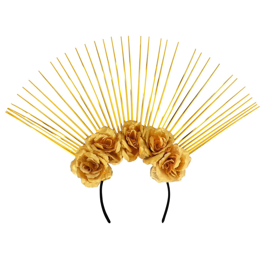 Deze mooie Nova halo kroon is een unieke tiara met grote goude bloemen die een festival of bruiloft outfit laat stralen en de look een Boho tintje geeft. Daarnaast is deze mooie halo kroon diadeem ook een unieke accessoire om een kostuum als godin of engel compleet te maken voor Carnaval of een cosplay evenement.
