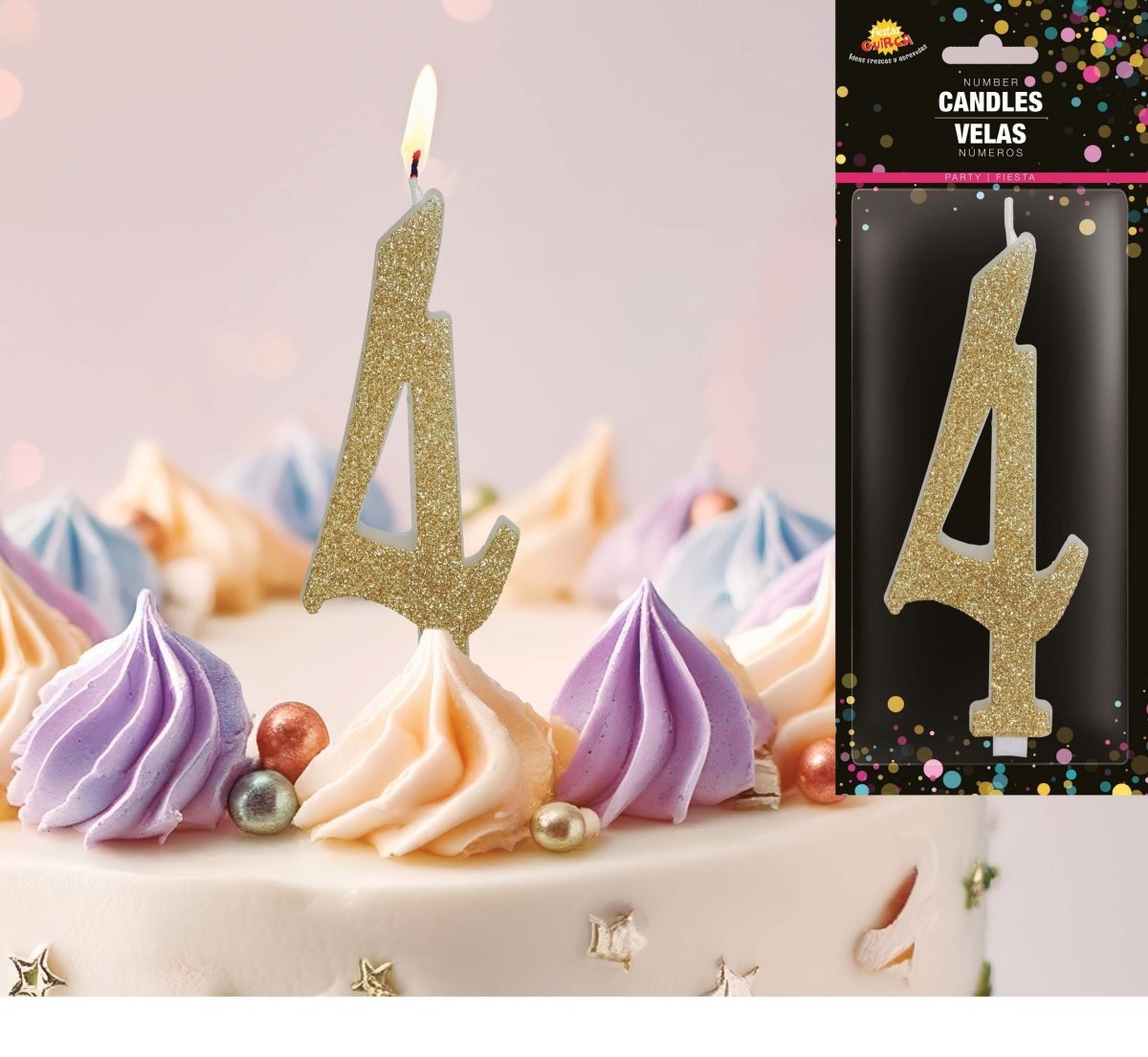 Gouden Kaars 4 Jaar Glitter 12,5cm