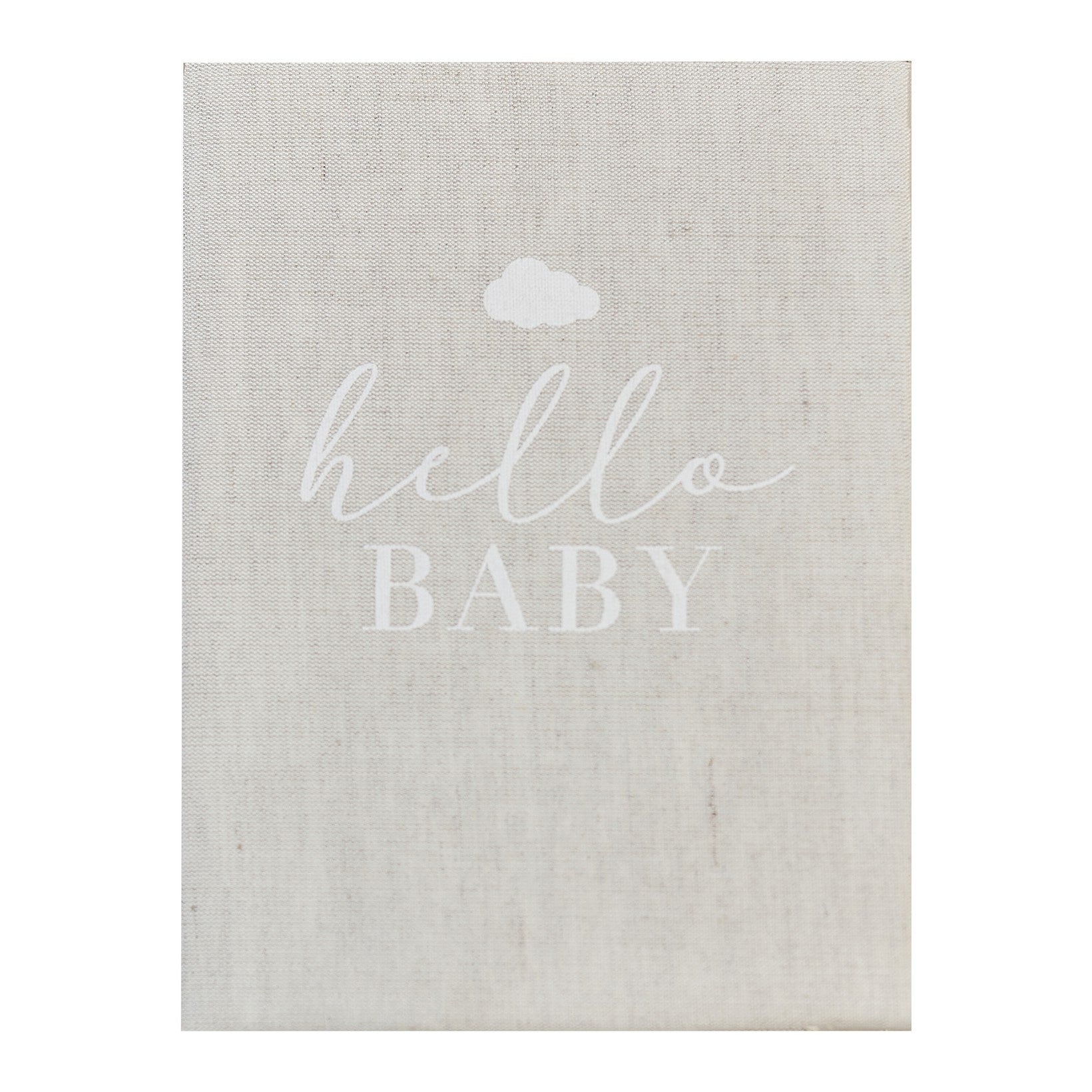 Dit schattige babyboek is gemaakt van harde rugstof met een mooie neutrale linnen afwerking.