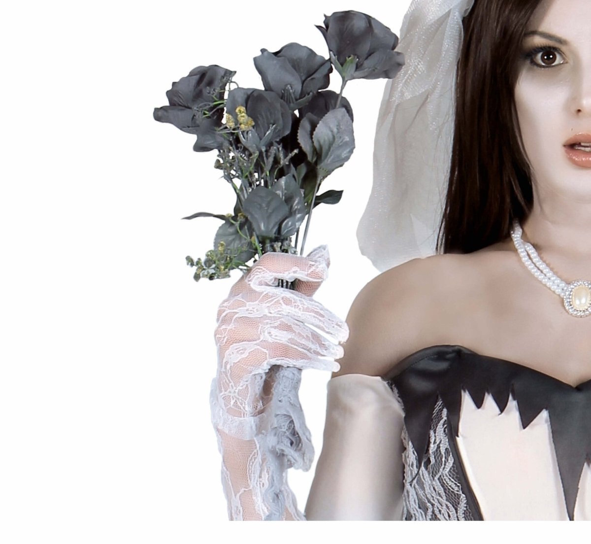 Grijze Halloween Nep Bloem 42cm