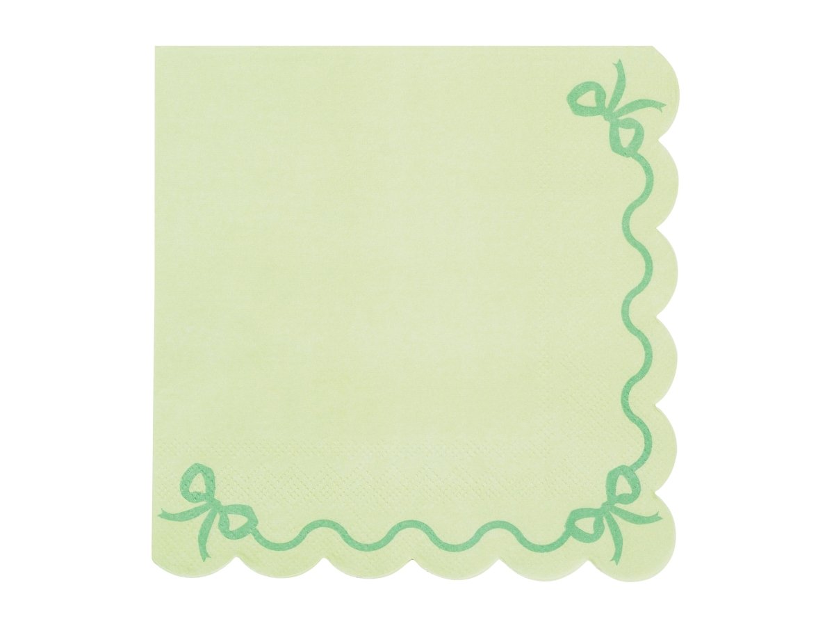 Papieren servetten in groen afgewerkt met een franje. De servetten zijn bedrukt met een lint en een strik. Afmetingen uitgevouwen ca. 33 x 33 cm, afmetingen opgevouwen ca. 16,5 x 16,5 cm. 12 stuks.