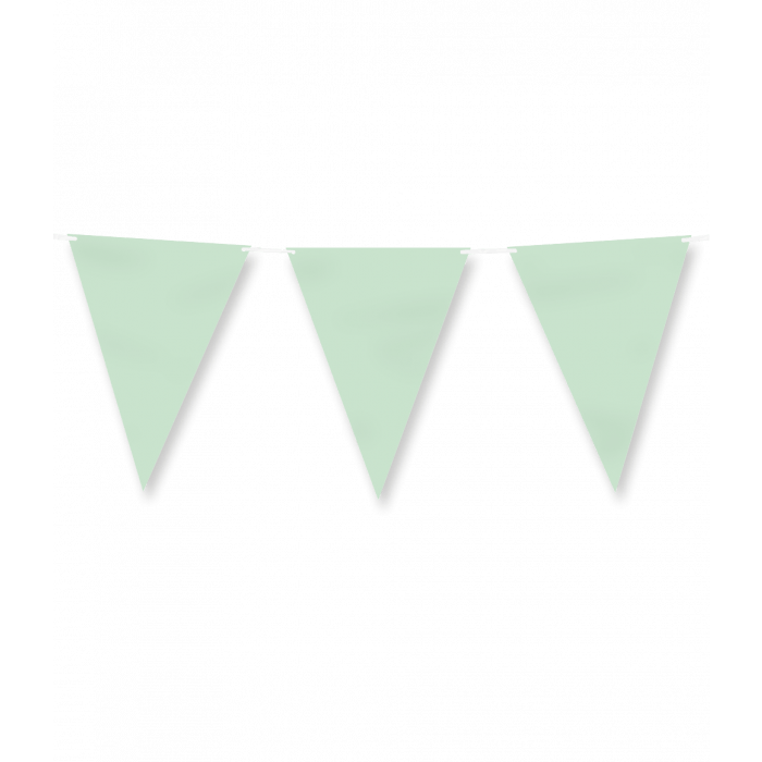 Paper flagline - Pastel green is de perfecte vlaggenlijn op een feestje waar de kleur pastel groen het thema is. Deze papieren vlaggenlijn heeft een subtiele lengte van 6 meter en past perfect bij de overige pastel groenkleurige artikelen zoals confetti, tafelkleden, bordjes, bekertjes, servetten en snackboxes. Presenteer deze items bij elkaar, zodat het voor de klant direct duidelijk is waar deze collectie uit bestaat. De vlaggetjes zijn van papier, wat het tot een milieuvriendelijke keuze maakt!