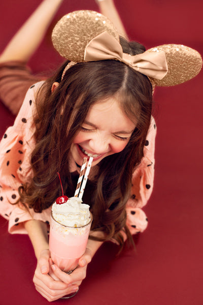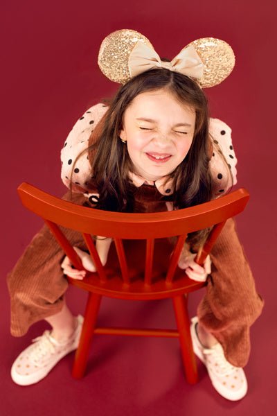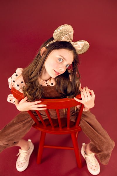 Hoofdband Mouse met strik in nude kleur Rose Goud en met de afmeting ca. 25 x 19 cm.