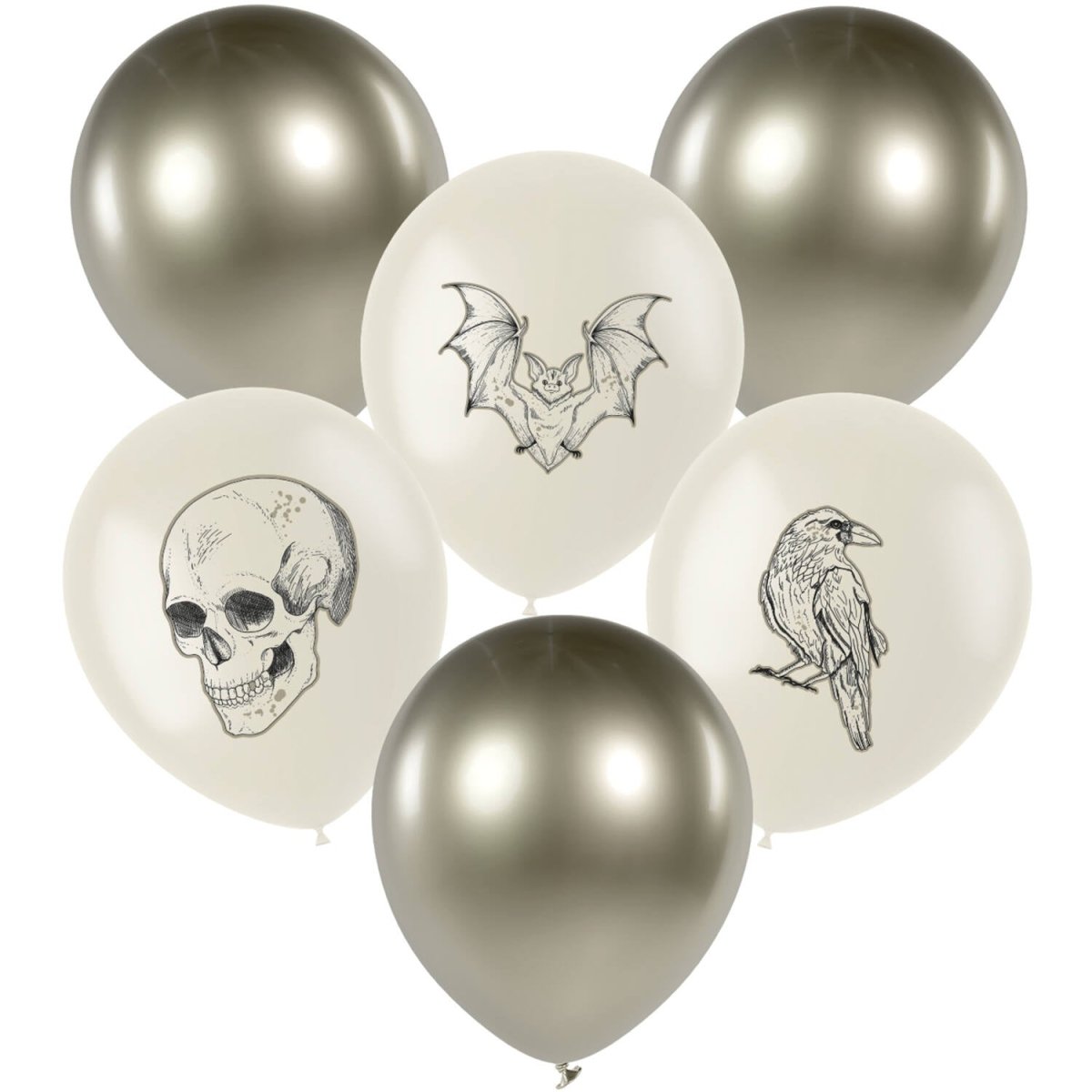 Halloween Ballonnen Wit Zilver 33cm 6st