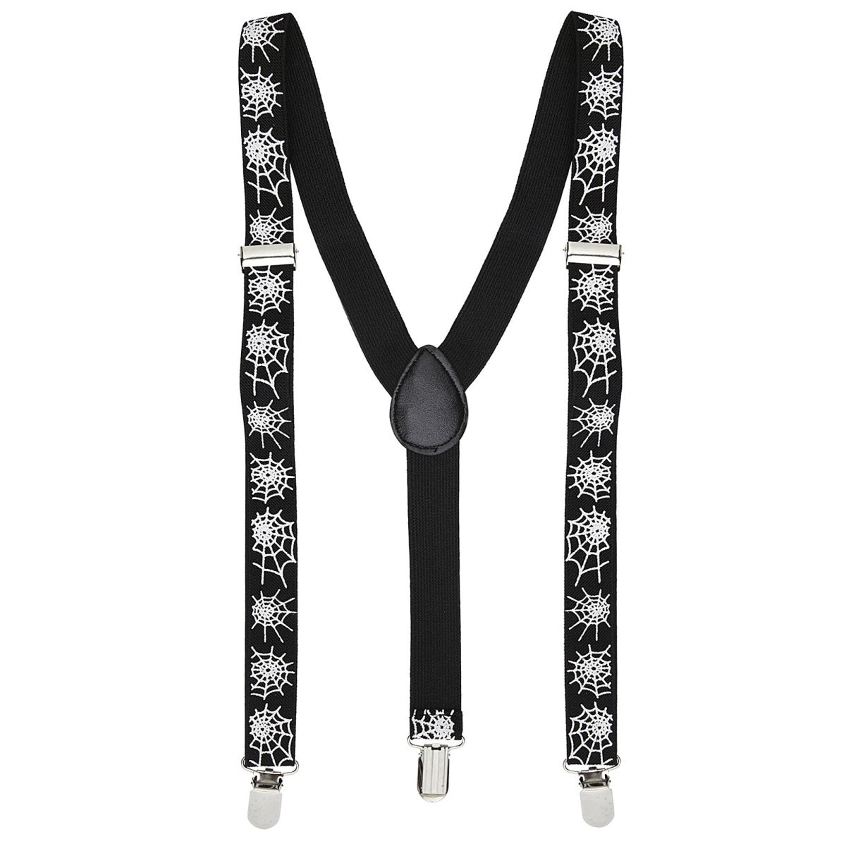 Maak je Halloweenoutfit compleet met deze zwarte en witte bretels met spinnenwebdesign. Ideaal voor verkleedpartijen, themafeesten of als opvallend accessoire bij je kostuum.