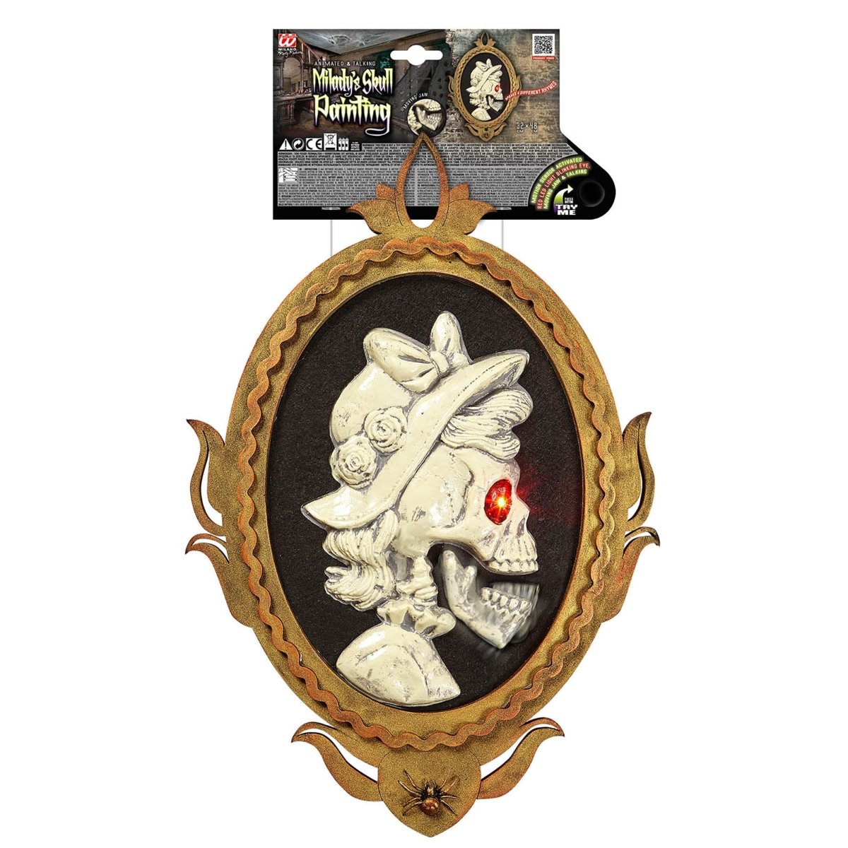 Halloween Deurbord Skelet Dame Met Beweging Licht En Geluid 48cm