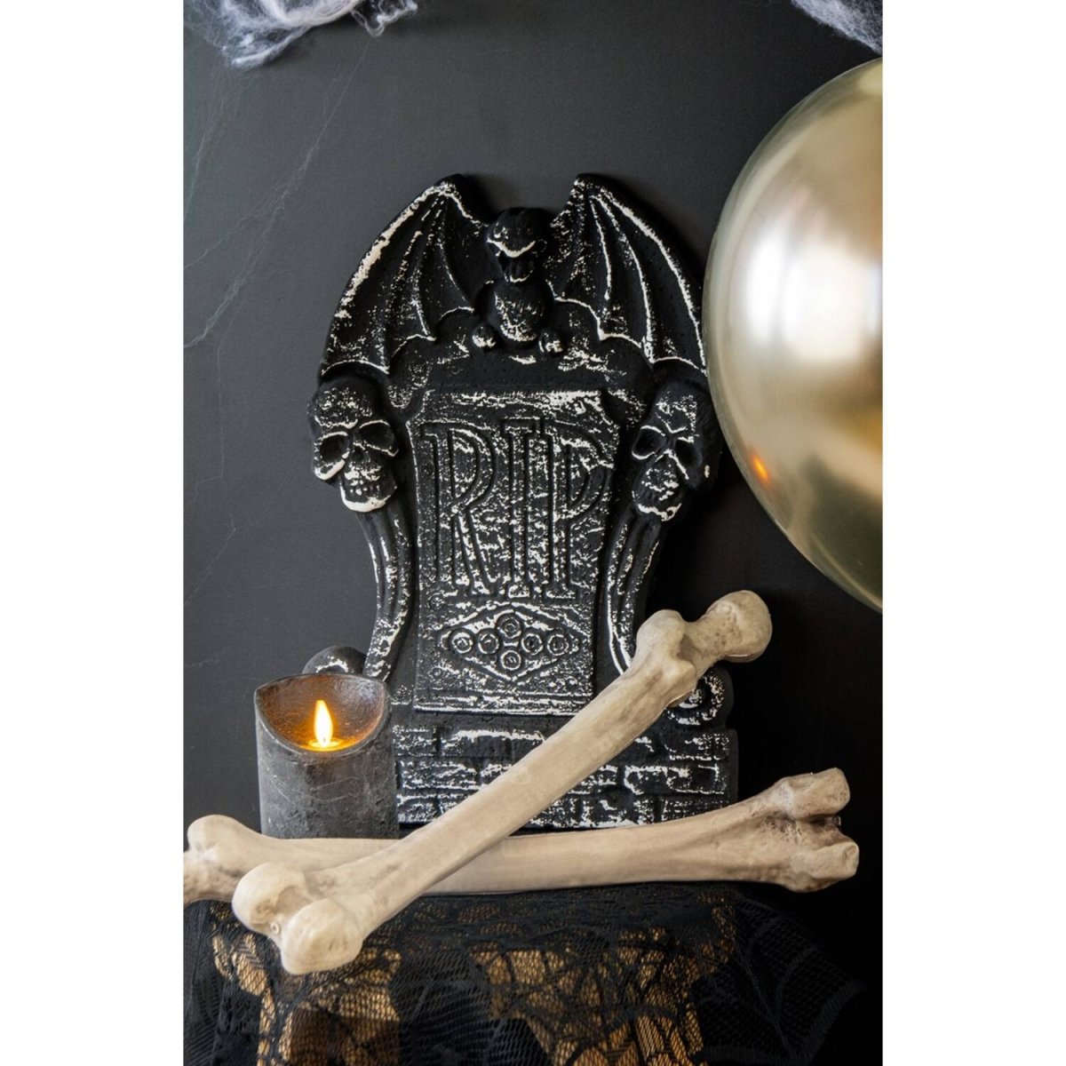 Rust in Vrede. Grafsteen "RIP" - Halloween - 25 x 36 cm. Inhoud: 1 grafsteen kruis. Bijvoorbeeld te gebruiken tijdens de volgende feestgelegenheid/feestgelegenheden: Halloween, Themafeest. Een verweerde grafsteen met "RIP". Zeer geschikt voor feesten waar zelfs de doden voor uit hun graf komen. Dit artikel is gemaakt van foam.