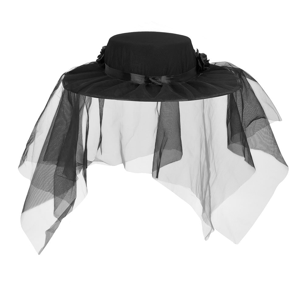 Deze mooie stijlvolle zwarte hoed is afgewerkt met zwarte en rode bloemen, versierd met kleine schedels, en omhuld door een mysterieuze sluier. De mix van bloemen en schedels geeft deze hoed een unieke en sprekende uitstraling die perfect past bij het Day of the Dead thema. De accessoire om een stijlvolle Halloween outfit helemaal compleet te maken.