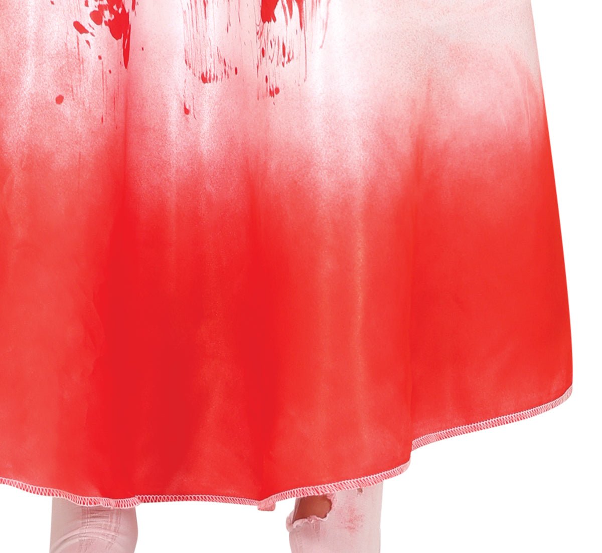 Maak je griezelige Halloweenlook compleet met deze bloederige jurk voor meisjes. De set bestaat uit een jurk en bijpassende sluier, beide gemaakt van polyester voor comfort en duurzaamheid. Perfect voor trick or treaten, Halloweenfeestjes of verkleedpartijen met een spooky effect.