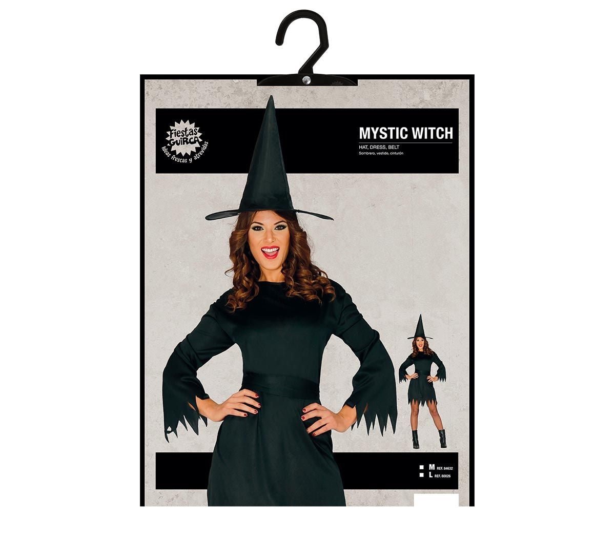 Inhoud: heksen jurk, riem en hoed