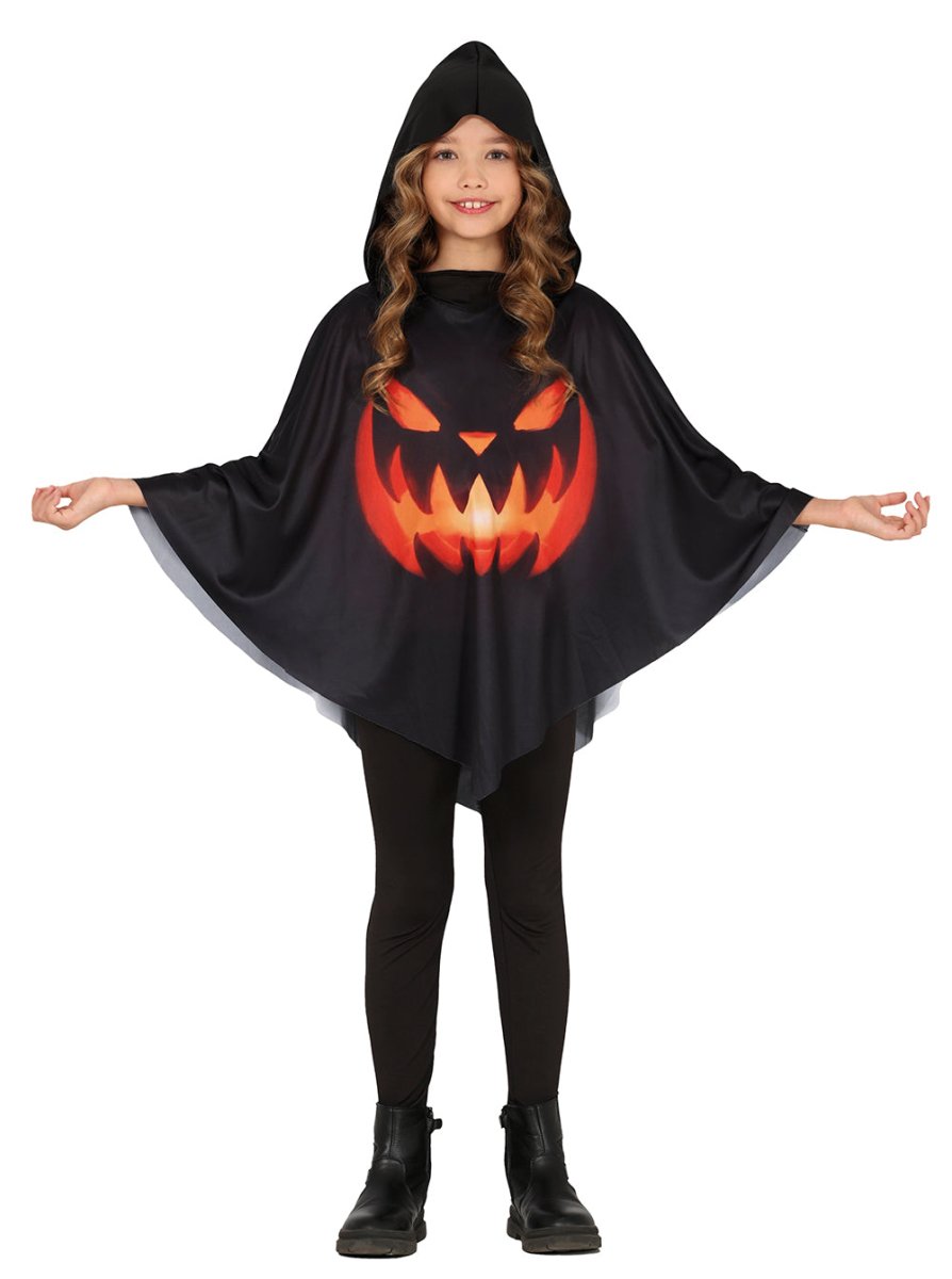 Laat je kindje griezelig en feestelijk voor de dag komen met dit Halloweenkostuum in pompoenstijl. De set bestaat uit een poncho en een bijpassende muts, uitgevoerd in de klassieke Halloweenkleuren zwart en oranje. Gemaakt van polyester voor comfort en duurzaamheid, ideaal voor trick or treaten, verkleedfeestjes of Halloween evenementen.