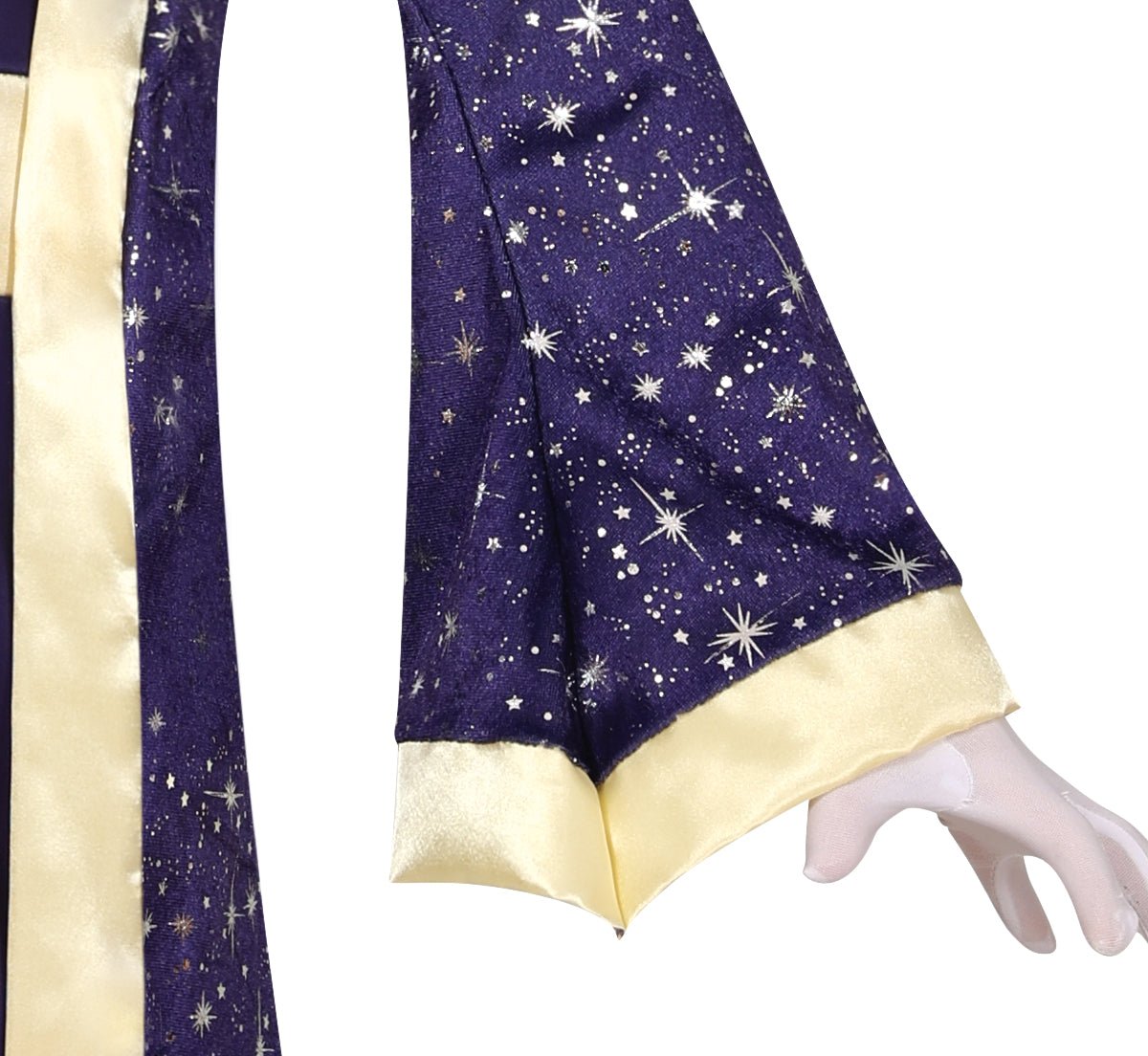 Laat je kind magisch voor de dag komen met dit Halloween tovenaarskostuum. De set bestaat uit een jurk en bijpassende hoed, beide gemaakt van polyester voor comfort en duurzaamheid. Ideaal voor trick or treaten, Halloweenfeestjes of verkleedpartijen met een magisch thema.