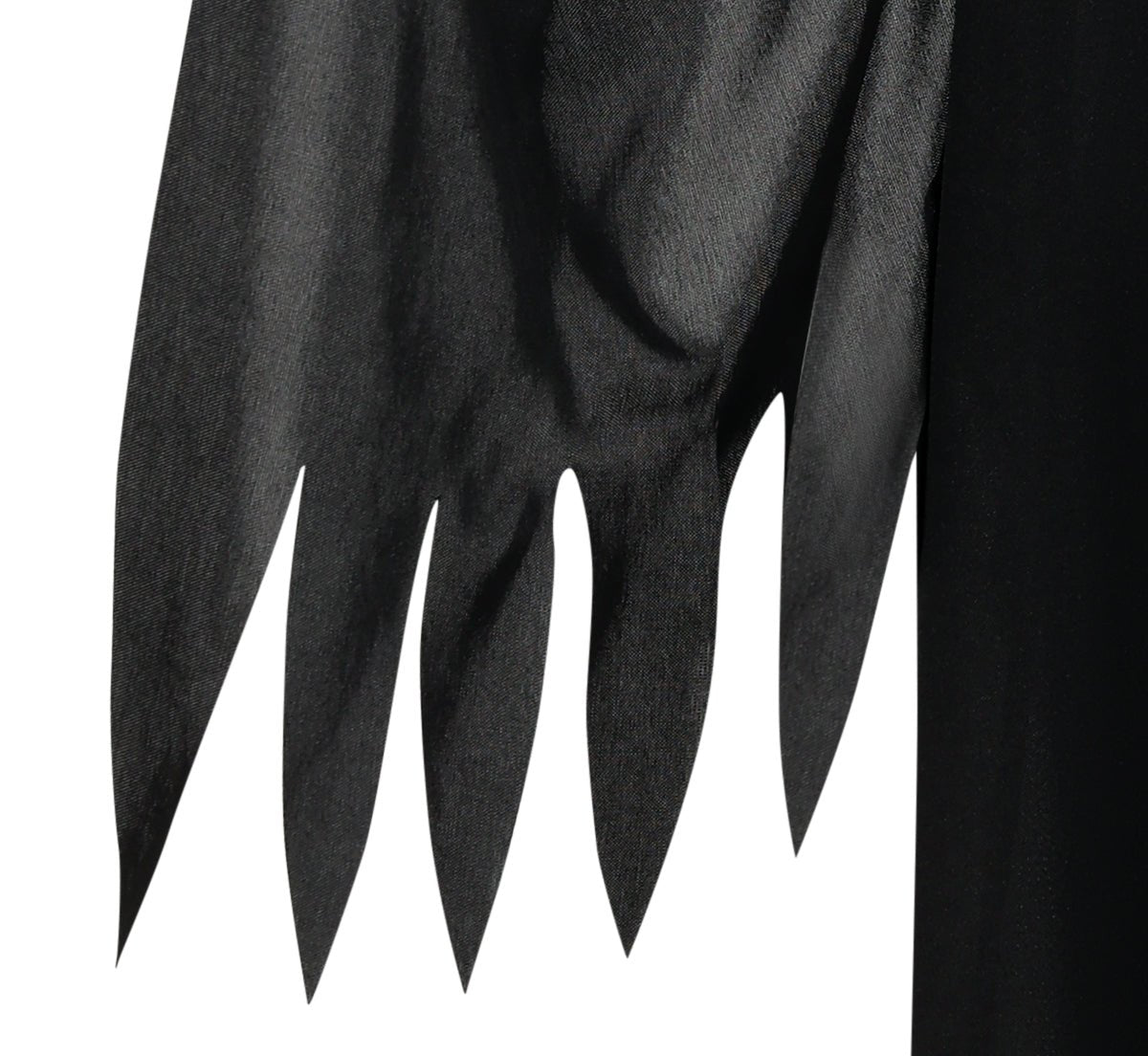 Laat je kindje griezelig voor de dag komen met dit zwarte Halloween kostuum als geest. De set bestaat uit een tuniek met capuchon, gemaakt van polyester voor comfort en duurzaamheid. Ideaal voor Halloweenfeestjes, trick-or-treating of thema-evenementen.
