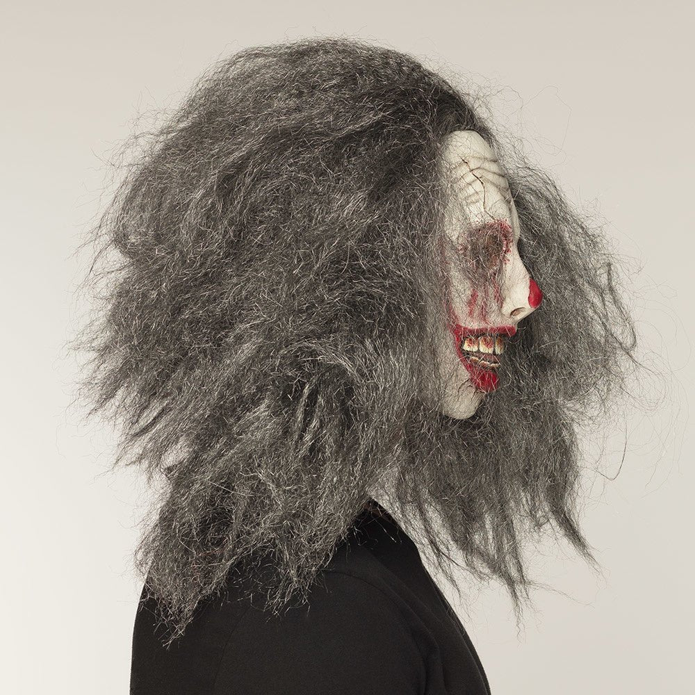 Verpakkingsinhoud: Latex hoofdmasker Zombieclown met haar
