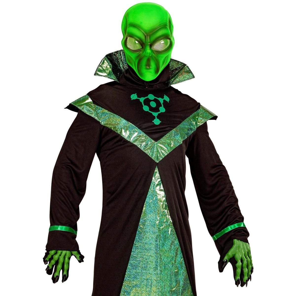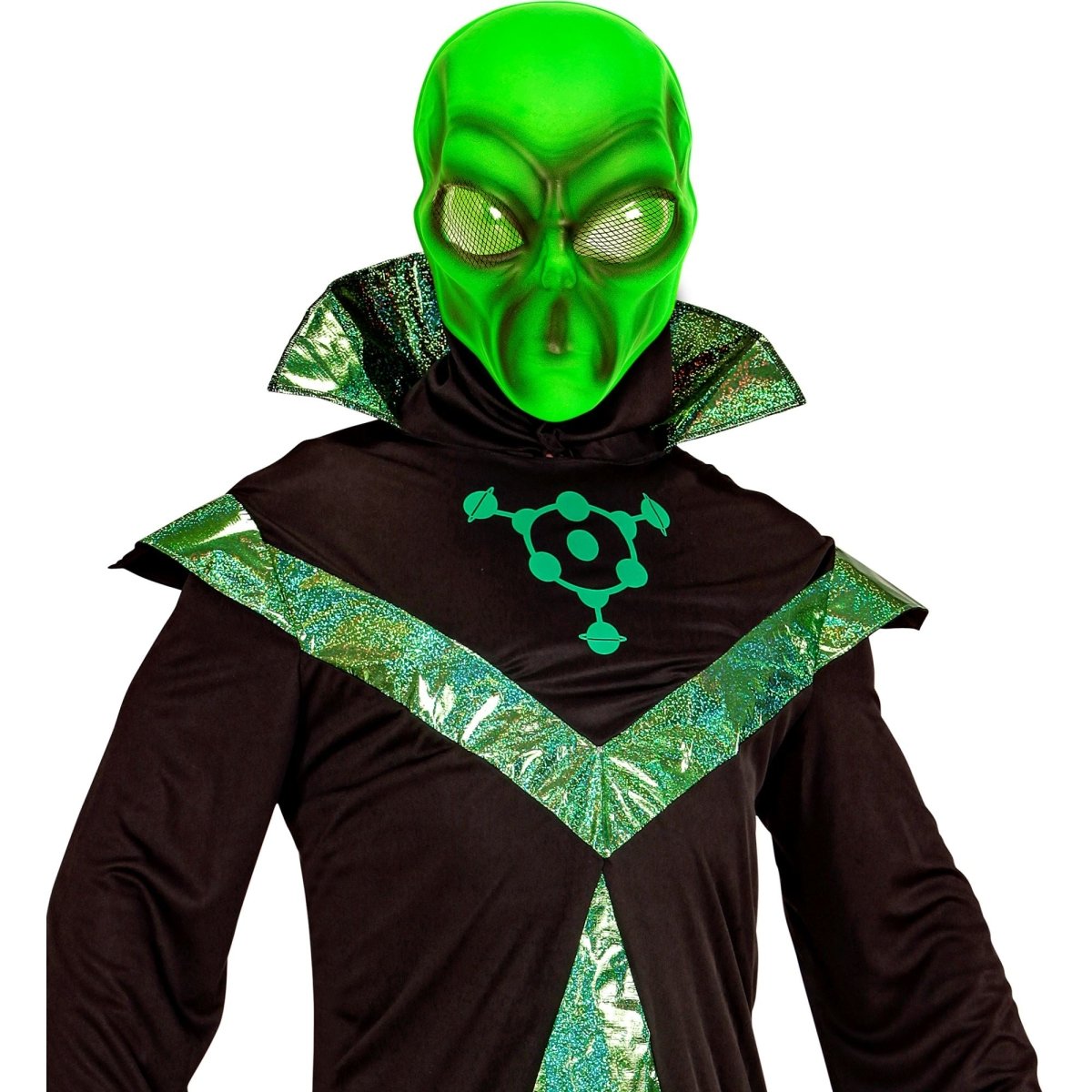 Transformeer jezelf in een buitenaards wezen met dit groene alien-masker. Perfect voor Halloween, themafeesten of verkleedpartijen waarin je wilt opvallen.
