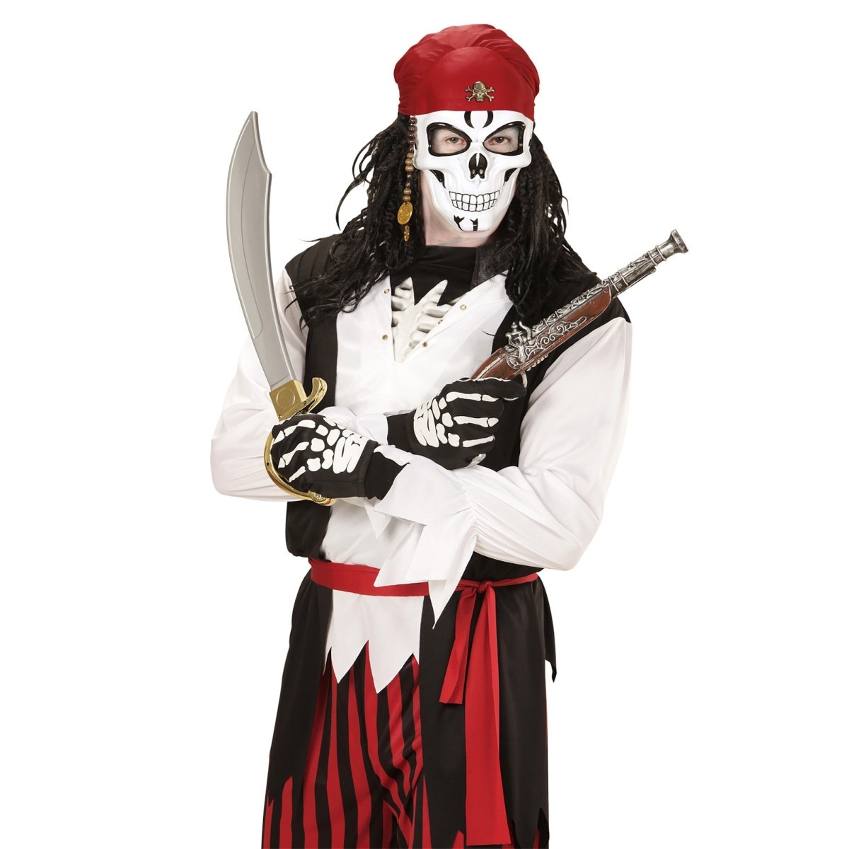 Maak je piratenkostuum compleet met dit 3-delige Halloweenmasker. Perfect voor verkleedpartijen, themafeesten of griezelige Halloweenlooks.