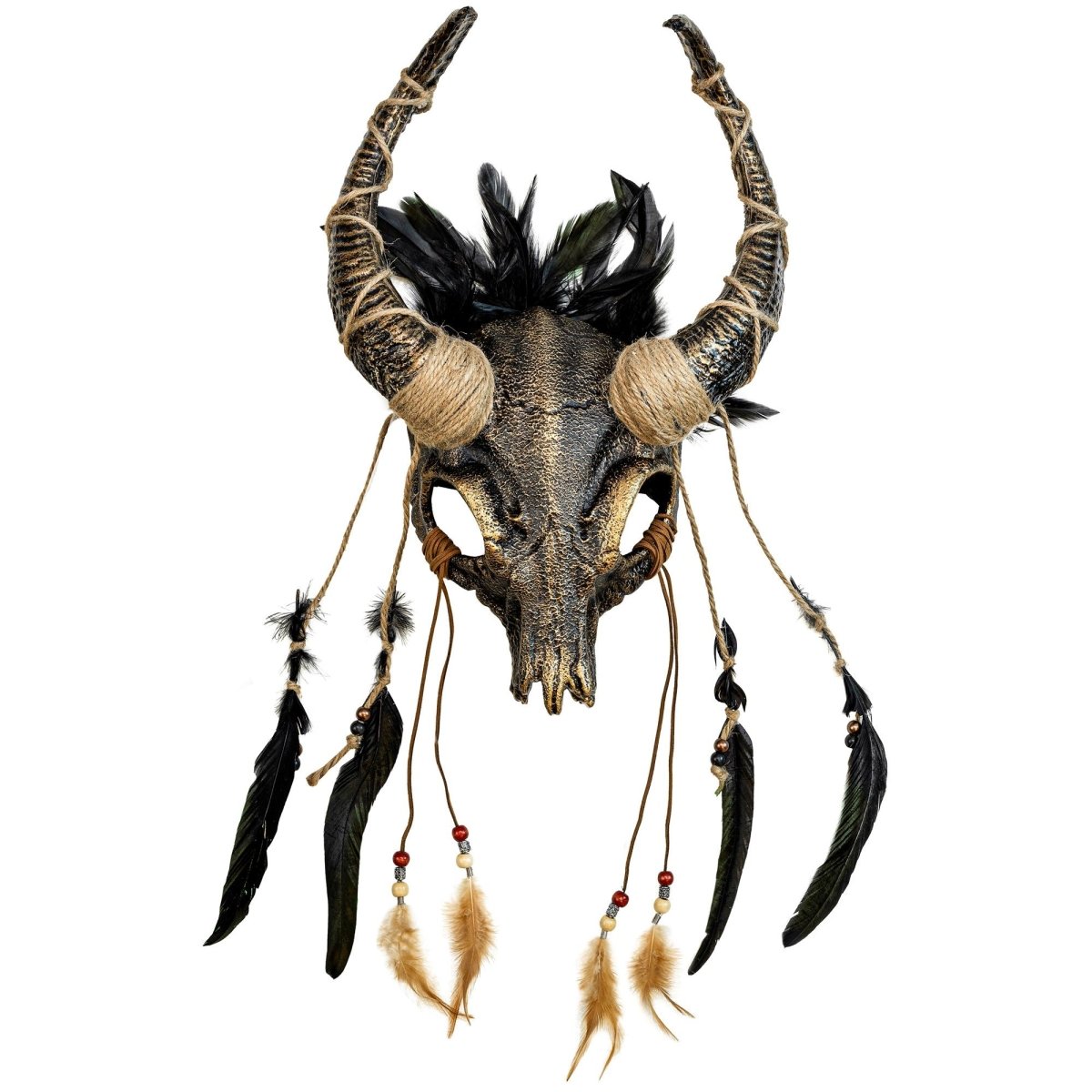Maak je Halloween-outfit compleet met dit griezelige schedelmasker met veren. Perfect voor themafeesten, verkleedpartijen of trick-or-treating. Het masker combineert een enge schedellook met stijlvolle veren voor een opvallend effect.