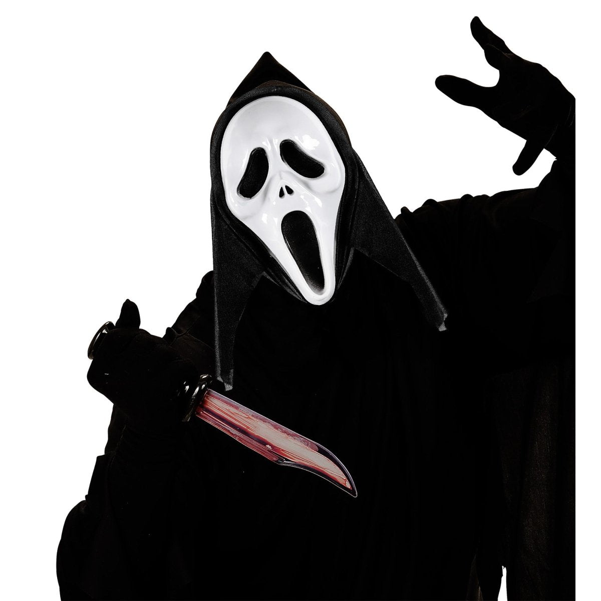 Maak je Halloweenlook compleet met dit iconische spookmasker, geïnspireerd op de film Scream. Het masker met kap geeft je een griezelige uitstraling en is perfect voor horroroutfits en themafeesten.