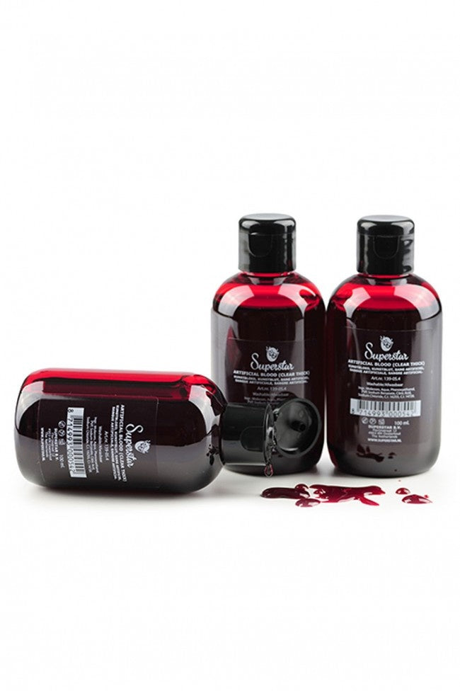 Superstar Fake Blood, Clear Thick Clotting is een verbluffend levendig, helder rood nep bloed. De dikke consistentie zorgt ervoor dat het perfect op zijn plaats blijft zonder te druipen, ideaal voor het creëren van realistische bloederige wonden en gestolde effecten.