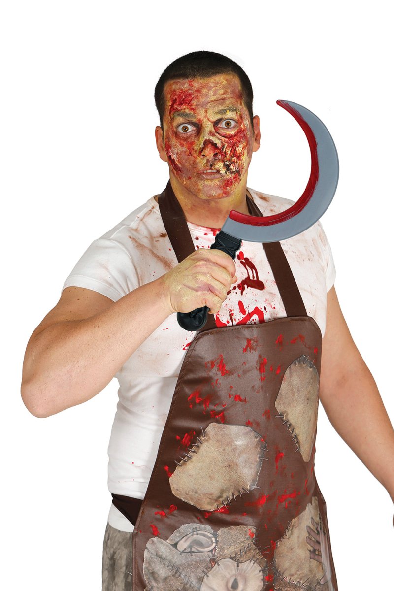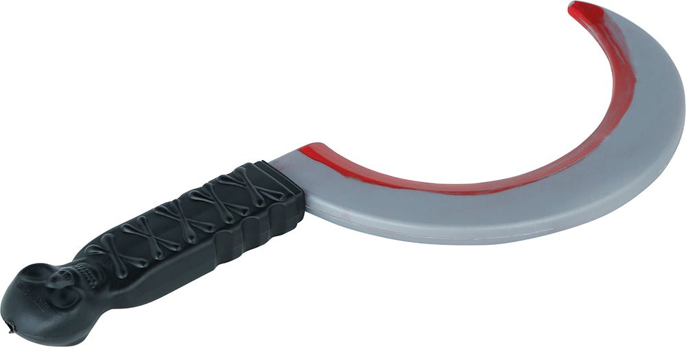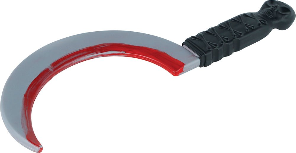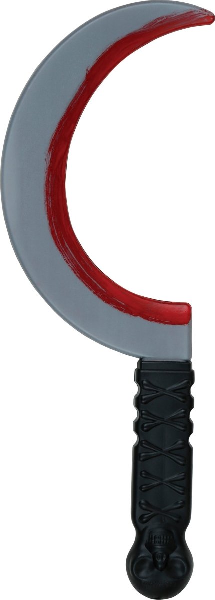Maak je Halloweenoutfit compleet met deze nep-sikkel van 35 cm. Het accessoire is gemaakt van PVC en heeft een realistisch ontwerp dat perfect past bij enge kostuums zoals grim reapers, monsters of andere griezelige personages. Ideaal voor Halloween, themafeesten of toneelvoorstellingen.