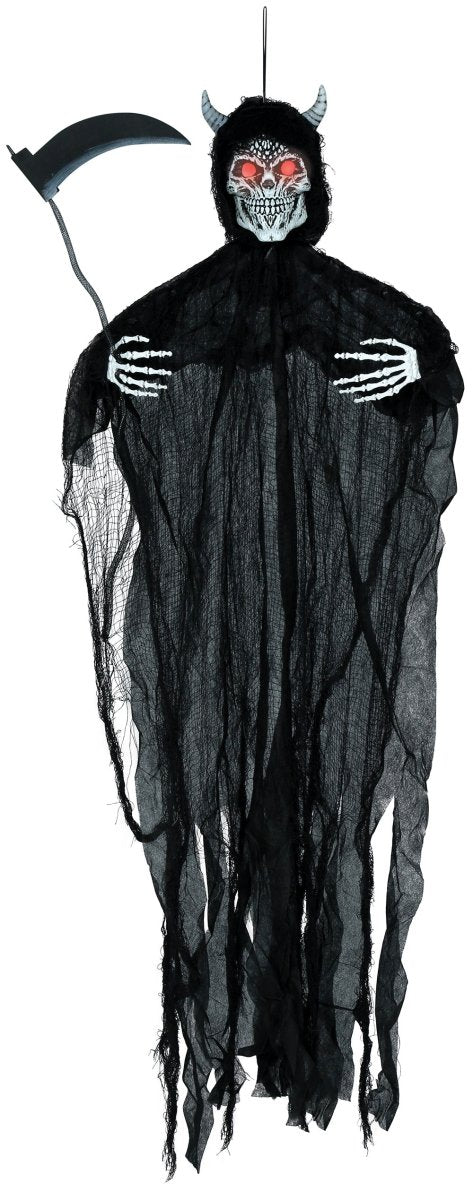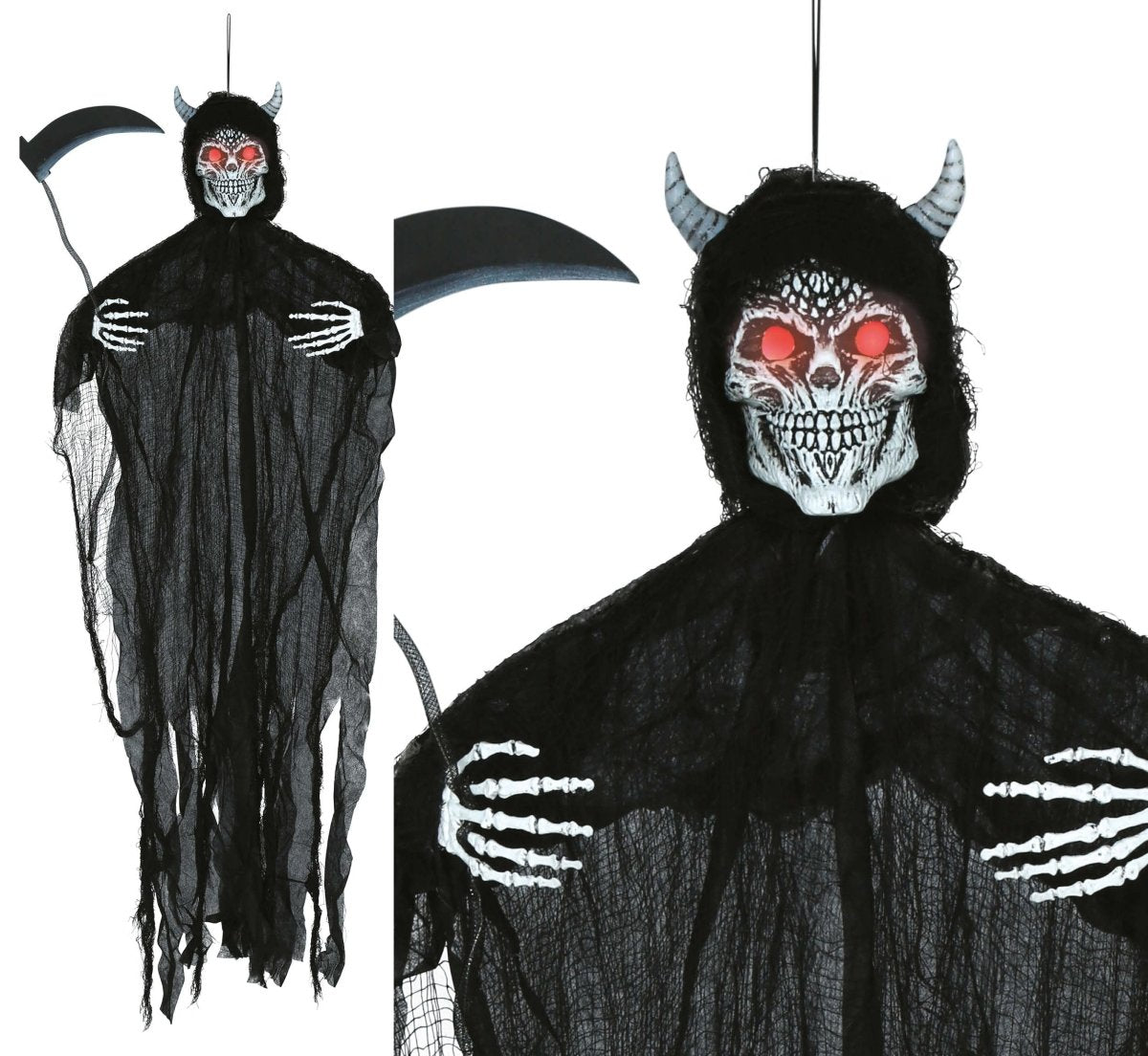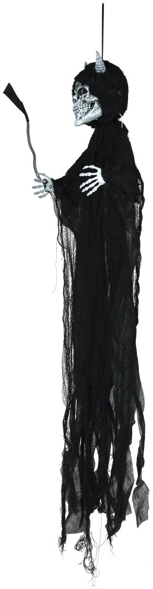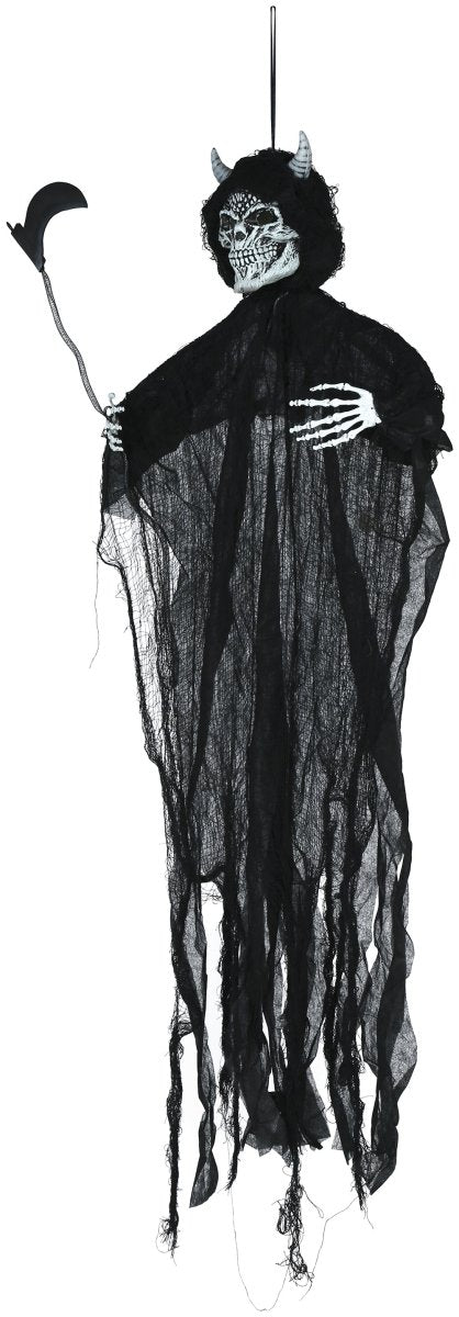 Beschrijving Reviews Over dit product Dit duivelse skelet van 130 cm is de perfecte aanvulling voor jouw griezelige Halloween decoratie. Met angstaanjagend licht en geluid brengt deze hangende pop extra spanning en sfeer in elke ruimte. Producteigenschappen: Inhoud: hangend skelet met licht en geluid Afmetingen: 130 cm Materiaal: metaal, polyester en pvc Batterijen: AAA (3 stuks, niet inbegrepen) Trustpilot