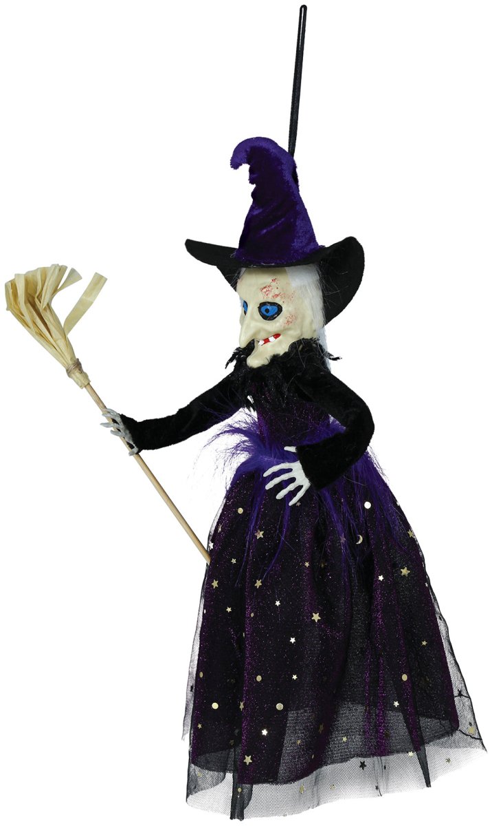 Voeg een griezelige touch toe aan je Halloween met deze Heks van 47 cm. Perfect als decoratie voor een enge sfeer tijdens Halloweenfeesten.