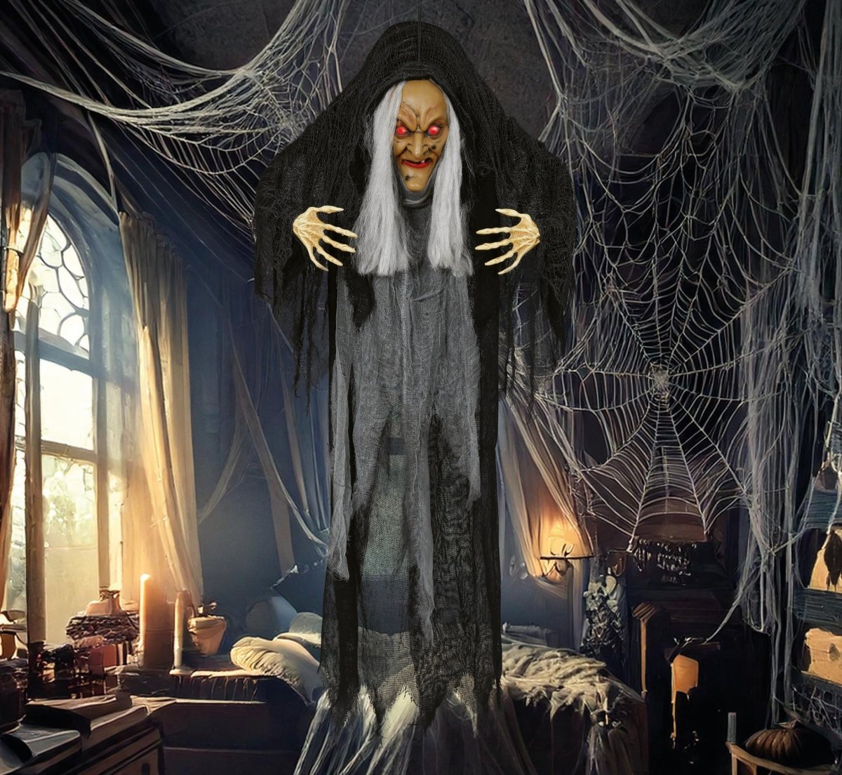 Halloween Pop Heks Met Licht, Geluid En Beweging 1,20m
