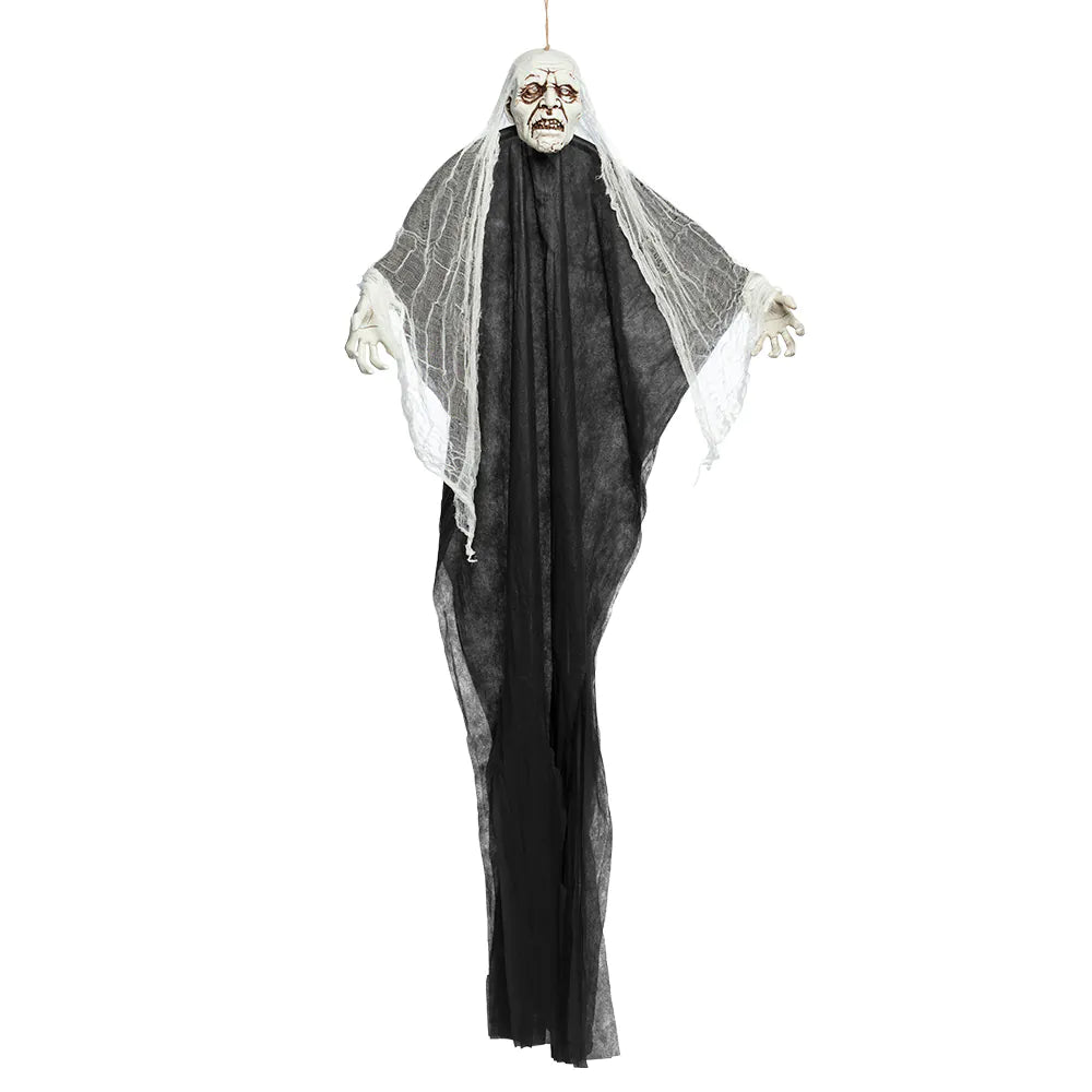 Voeg een griezelige en iconische touch toe aan je Halloweenversiering met dit Halloween pop Lichtspook van 1,7 meter. Perfect voor een enge sfeer tijdens Halloween in huis of in een spookhuis. Producteigenschappen: Inhoud: Halloween decoratie Lichtspook Afmeting: 1,70 meter Materiaal: 60% PET, 25% polypropylene, 15% cotton fiber Opties: Licht, geluid en geluidsensor Batterijen: 3 AG13/LR44 batterijen inbegrepen