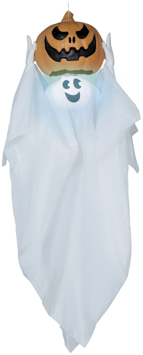 Voeg een griezelige en iconische touch toe aan je Halloweenversiering met deze Halloween Pompoenen Spook van 90 cm. Perfect voor een enge sfeer tijdens Halloween in huis of tuin.