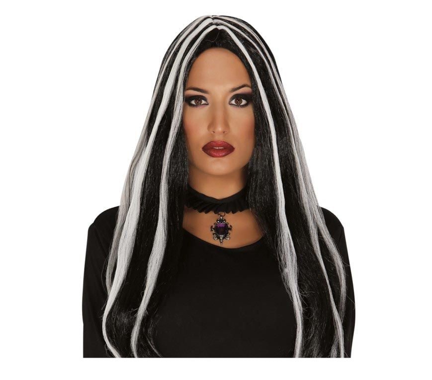 Halloween Pruik Lang Haar Witte Strepen