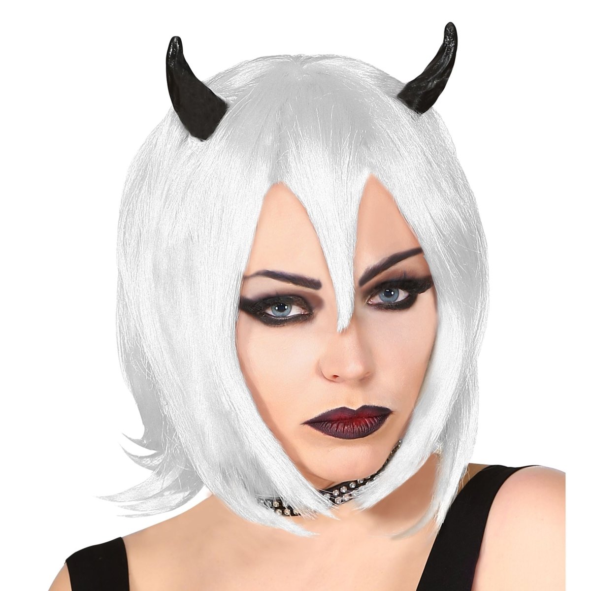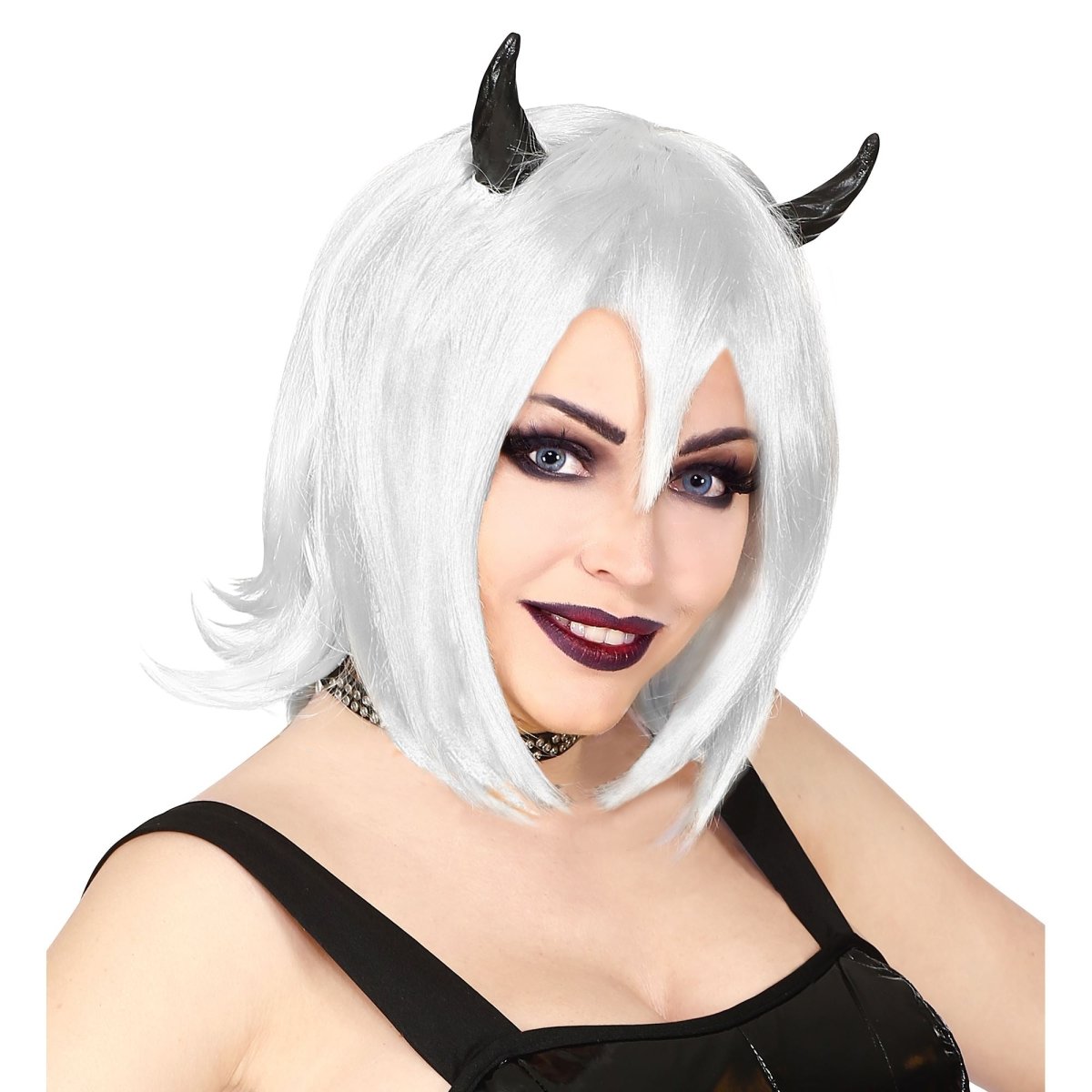 Maak je Halloween- of cosplaylook compleet met deze witte bob-pruik, perfect voor een demoon- of fantasy outfit. De pruik is eenvoudig te stylen en te dragen, en geeft direct een opvallende, griezelige uitstraling.